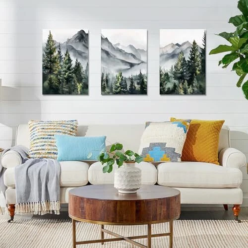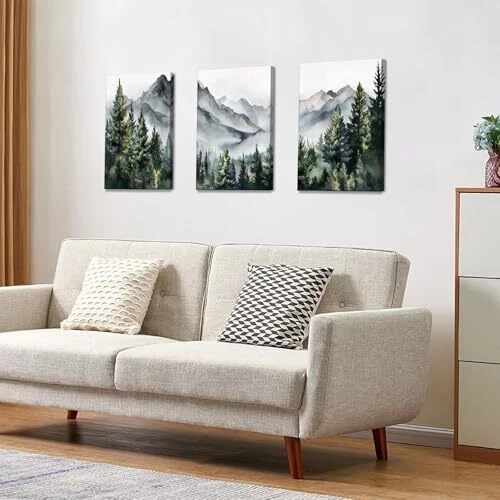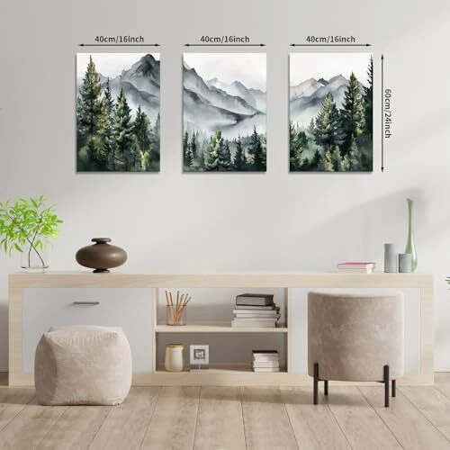Return Policy Fast Delivery Trusted seller WANGTIAO 3 Panels Framed Canvas Wall Art for Living Room, Abstract Mountain Forest Views Ink Wall Decor for Dedroom Office Wall Paintings Green Landscape Art Prints Pictures Ready to Hang 12"x16"x3 Product Description FRAMED CANVAS WALL ART: Abstract mountain forest landscapes wall paintings are 12"×16"(30×40cm), Total is 3 Panels, each panel is 30×40cm and with wooden frame. HIGH QUALITY PRINTED CANVAS: Our wall pictures use high-quality dense texture canvas, and the HD Giclee printing process brings superb color clarity in front of you. Wall paintings are waterproof, solid and durable. Become the focus of your room decor with vibrant and clear painting. EASY TO HANG: Each panel of canvas paintings already stretched on solid wooden frames, gallery wrapped, with hooks and accessories, ready to hang. Ease of maintenance. Make your room look more cosy and beautiful! PERFECT HOME DECOR: Abstract foggy green forest landscapes ink wall art can be used as your wall decor for bedroom, living room, office, kitchen, dining Room. Our framed artwork for walls come in a variety of themes and colors, so you can choose from a wide range of options! SECURELY PACKAGE DELIVERY: Each panel has 4 corner protectors. Multi-layer packaging protects the frame art prints to sure to safely transport and delivery. Any problem, please contact us in time, we will deal with it for you within 24 hours. Shipping Returns Payment Shipping Shipping is FREE to all addresses other than APO/PO boxes in the lower 48 states. All our stock ships from US-based warehouses. Shipped via USPS or UPS (depending on location and package weight) Unless stated otherwise, all orders will ship within 24-72 hours of your payment being processed. Check our feedback to see the great reviews of FAST shipping we offer. Returns Seller does not accept returns Payment We currently accept payment via eBay managed payments only. Once payment is cleared, we will dispatch your shipment within 1-3 business days. Please refer to the "Shipping" tab for more information regarding shipping speed to your destination.