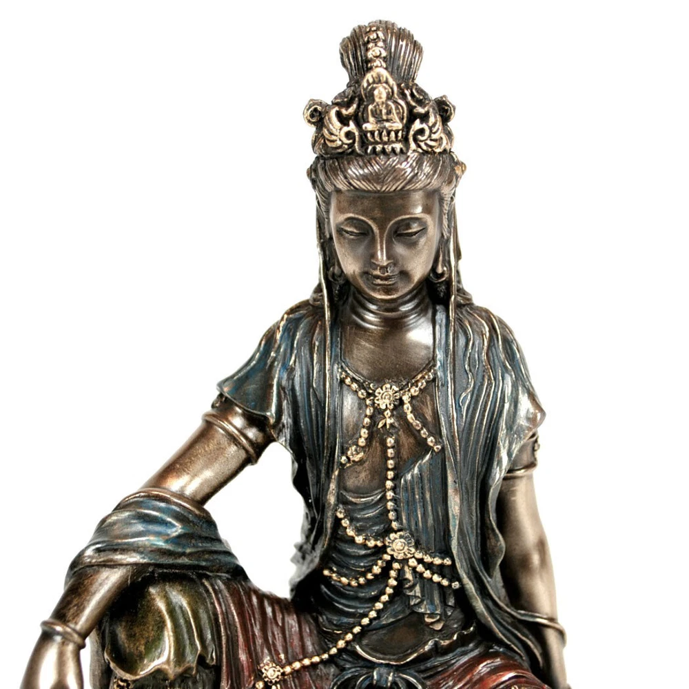 This beautiful statue of the Buddhist goddess, KWAN YIN is made from cold cast resin that is bronze plated. It is made with superior craftsmanship and has excellent details for its small size. Kwan Yin Pu Sa is the Buddhist Bodhisattva of compassion and mercy. She is beloved and worshiped in Buddhist communities worldwide for her unconditional love of humanity. Details Condition: Brand New Design: Water and Moon Kwan Yin Material: Cold Cast Resin with Bronze Plate Size: Approx. 5" x 3.5" x 2.75" Item Weight: Approx. 12 oz SEE OUR ENTIRE SELECTION OF QUALITY KWAN YIN STATUES IN THE 'KWAN YIN' SECTION OF OUR STORE. Water and Moon Kwan Yin Statue Water and Moon Kwan Yin Statue Click image to enlarge Description This beautiful statue of the Buddhist goddess Kwan Yin is made from cold cast resin that is bronze plated. It is a high quality statue made with superior craftsmanship and has excellent details . Kwan Yin Pu Sa is the Buddhist Bodhisattva of compassion and mercy. She is beloved and worshiped in Buddhist communities worldwide for her unconditional love of humanity. Details Condition: Brand New Design: Water and Moon Kwan Yin Material: Cold Cast Resin with Bronze Plate Size: Approx. 5" x 3.5" x 2.75" Item Weight: Approx. 12 oz SEE OUR ENTIRE SELECTION OF QUALITY KWAN YIN STATUES IN THE KWAN YIN SECTION OF OUR STORE. Shipping Domestic shipping costs calculated to location. International Buyers International shipping charges are calculated to location in the 'Shipping and Payments' tab near the top of this page. Import duties, taxes, and charges are not included in the item price or shipping cost. These charges are the buyer's responsibility. Please check with your country's customs office to determine what these additional costs will be prior to bidding or buying. 'International First Class Mail' can take up to 6 business weeks for delivery depending on destination country, destination customs, and local or origin peak holiday shipping season. Faster 'International Priority Mail' shipping options are also available at checkout for most items. About Us The Tiny Dragon is a U.S. owned and operated 'e-retail' company. Our mission is to provide unique and affordable items of quality, promptly delivered to your complete satisfaction. Our items are shipped directly to you from our headquarters in beautiful Portland, Oregon USA. View our entire inventory at: At 'The Tiny Dragon' you are a valued customer and it is always our pleasure to serve you.