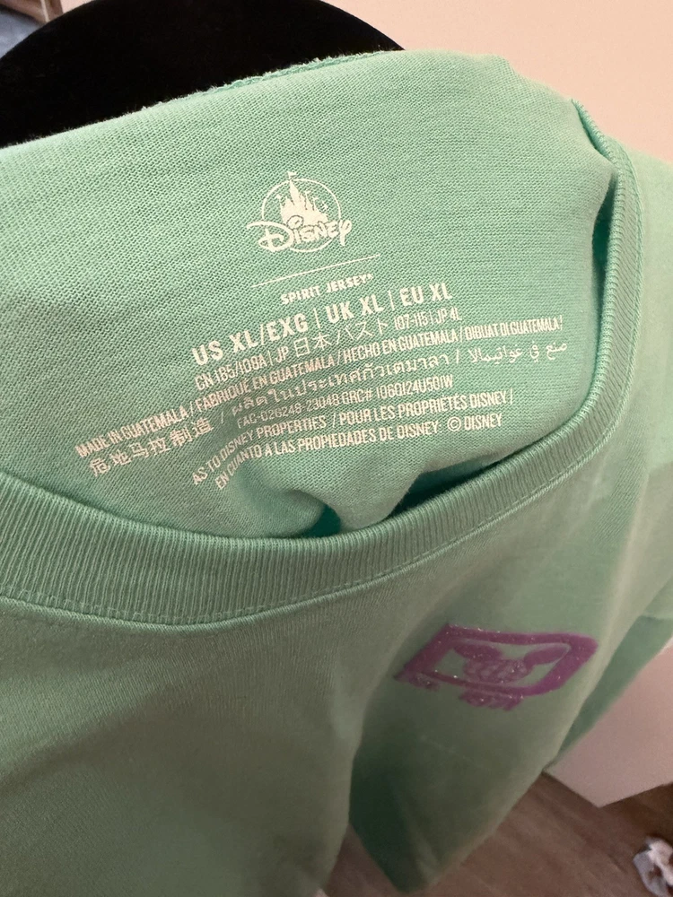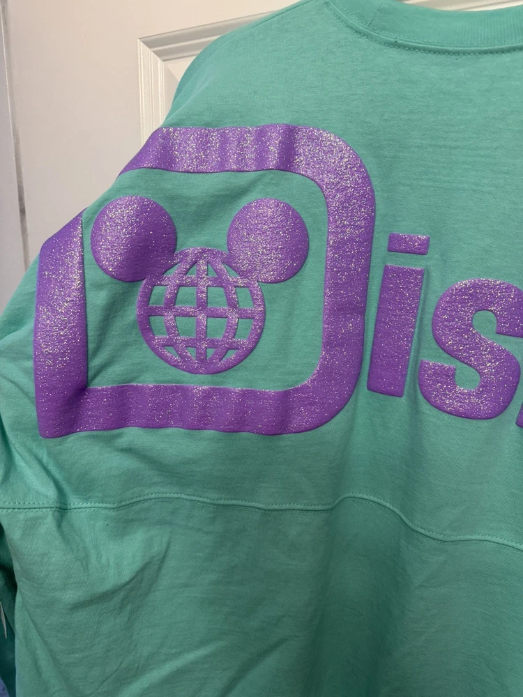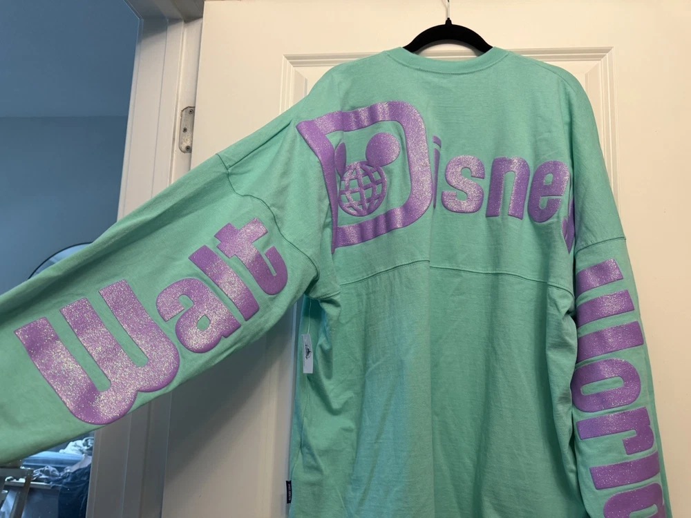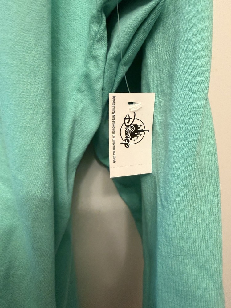 The WDW Walt Disney World Spirit Jersey Disney Parks Long Sleeve T-Shirt in size XL is a teal and purple shirt featuring the iconic Disneyland characters and theme. This unisex shirt is suitable for adults and perfect for any Disney fan looking to add a unique and stylish piece to their collection. The official Spirit Jersey brand ensures high quality and authenticity, making it a must-have for any Disney Parks enthusiast. Teal/aqua and purple colors could represent Ariel or Sulley, etc. Purple is glittery but glitter does not come off with touch, it is part of the fabric. Measurements: Pit to pit: 28” Length: 33”