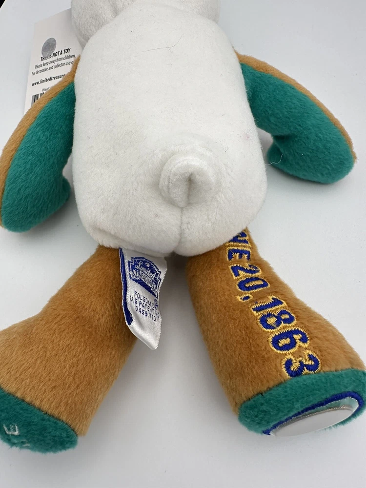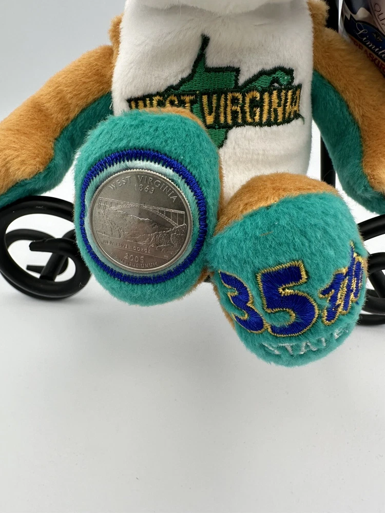 This West Virginia State Quarter Coin Bear is a must-have for any collector of limited edition stuffed animals. With its soft plush fur and adorable design, this bear is sure to bring joy to anyone who cuddles with it. The bear is 8 inches in size and was produced in 2005 as part of the 50 States of America Coin Bears series. The bear is recommended for children ages 8 and up, as well as adults who enjoy collecting limited edition items. It is a great addition to any collection and makes for a wonderful gift. This bear is not only a fun and unique toy, but also a piece of history that celebrates the beauty of West Virginia. Please check my other listing I love to combine shipping and always refund overcharged shipping. I have all 50 states listed if you need more.