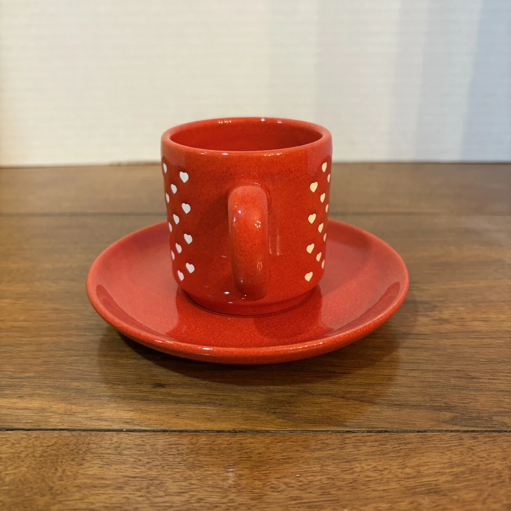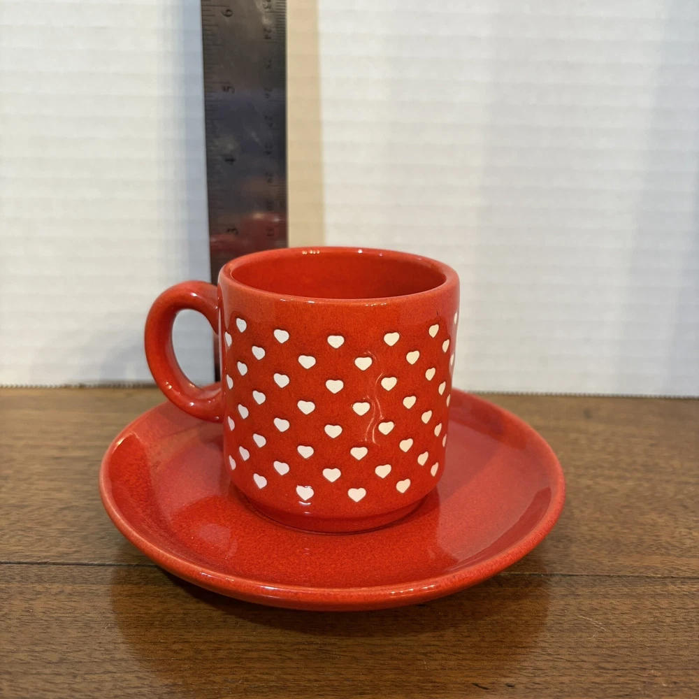 This vintage Waechtersbach Red Valentine Heart Coffee Cup and Saucer set from the 1980s features an embossed heart pattern, making it perfect for Valentine's Day. No chips or cracks. Experienced shipper of fragile items.