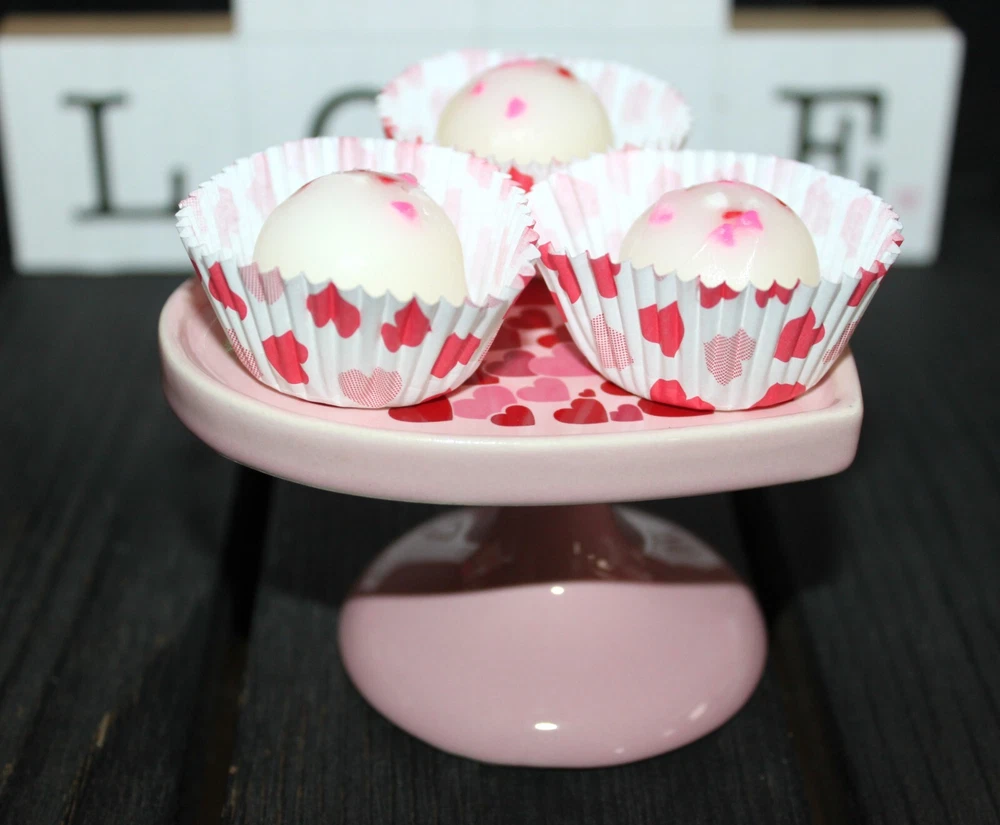 **** SHIPPING IS OFTEN CALCULATED HIGH WHEN PURCHASING MORE THAN 1 ITEM SO FEEL FREE TO MESSAGE ME FOR A SHIPPING QUOTE **** When combining purchases please click on "request total from seller" at checkout and wait for me to send you a invoice with combined shipping. If you are using your phone this option may not be available and if so just message me and I can make you a listing with everything combined and the correct amount on shipping. Thank You ;) *** These are NOT EDIBLE. *** These are my handmade highly scented wax warmer tarts or melts that are made with a special blend of wax that allows me to add up to 10% more fragrance than most waxes. These are my actual life sized large wax chocolate truffles candy topped with hearts that smell and look so real you'll be amazed they're not! You will receive 12 white chocolate truffle candy wax melts. They are scented to the max in WHITE CHOCOLATE CHERRY & NUTS. The aroma of sweet maraschino cherries smothered in milk chocolate with a sweet undertone of vanilla and nuts. This set will include a sweet little stoneware Valentine's heart cake stand to display them on until you are ready to melt them. I will also include the little heart candy paper wrappers as shown to set some in on the stand. The stand measures 4" x 3.6" x 2.17". This looks so cute displayed with your Valentines decorations or tiered tray decor and they smell wonderful just sitting out for display without melting them. They also make great gifts so please be sure to check my other listings for terrific smelling candles and tarts to go with your order. Tarts will arrive in a cello bag tied with a homespun bow and labeled so it will be gift ready. International Buyers : Please contact me for shipping quote. Shipping I strive to ship within 48 hours of payment received not including weekends and holidays. I ship USPS Priority or Parcel Post and for the heavier orders I can ship Fed-Ex. I do offer USPS Flat Rate shipping as well. Insurance is the buyers responsibility. I am always happy to combine auctions to save you money on shipping fees and I only change actual shipping costs. Please email with any shipping questions or quotes if needed. Thanks for stopping by! Please do come back again soon~*** Please note I do not accept returns for used merchandise. Must be returned in same condition as received. *** RETURNS ARE ONLY ACCEPTED IF ITEM HAS BEEN MISREPRESENTED