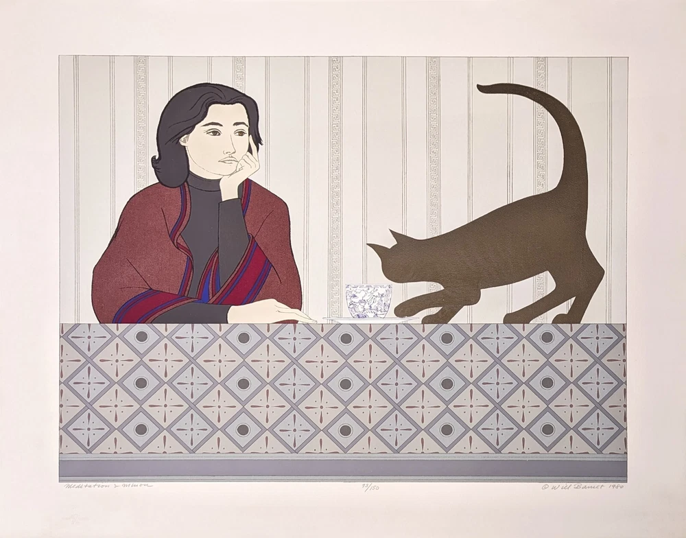 WILL BARNET "MEDITATION AND MINOU" MEDIUM: LITHOGRAPH SHEET SIZE: 28 X 34 INCHES IMAGE SIZE: 22 X 28 INCHES CUSTOM FRAMED AS PICTURED EDITION: OF 150 YEAR: 1980 SIGNATURE: HAND SIGNED, TITLED AND NUMBERED BY THE ARTIST CERTIFICATE OF AUTHENTICITY INCLUDED ARTWORK IS IN EXCELLENT CONDITION ADDITIONAL IMAGES AVAILABLE UPON REQUEST US Shipping FREE Standard Domestic Shipping International Shipping $400.00 Int'l. Shipping Charge
