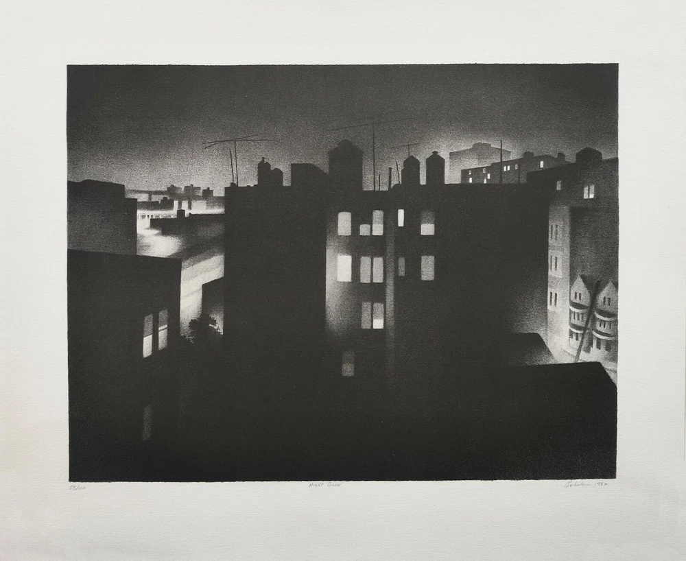 WILLIAM BEHNKEN "NIGHT GLOW" LITHOGRAPH SHEET SIZE: 16 X 20 INCHES IMAGE SIZE: 12 X 16 INCHES EDITION: OF 100 SIGNATURE: HAND SIGNED, DATED & NUMBERED BY ARTIST CERTIFICATE OF AUTHENTICITY INCLUDED ARTWORK IS IN EXCELLENT CONDITION ADDITIONAL IMAGES AVAILABLE UPON REQUEST US Shipping FREE Standard Domestic Shipping International Shipping $100.00 Int'l. Shipping Charge
