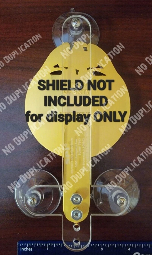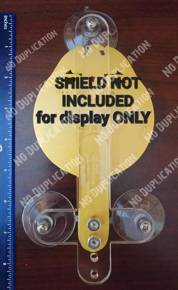 SUPERIOR SHIELD HOLDER THIS LISTING IS FOR (1) SHIELD HOLDER (INCLUDES MOUNTING HARDWARE NEEDED TO SECURE SHIELD AND HOLDER) (AS SHOWN) Made from quality acrylic plastic Can be used for several different types and sizes of shields (PBA, DOP & FMBA) Includes mounting hardware (screws and suction cups) Strong and durable Manufactured by S.P.I. Experts in Execution ** Coming soon estimated date October 2023 Y - shaped shield holders