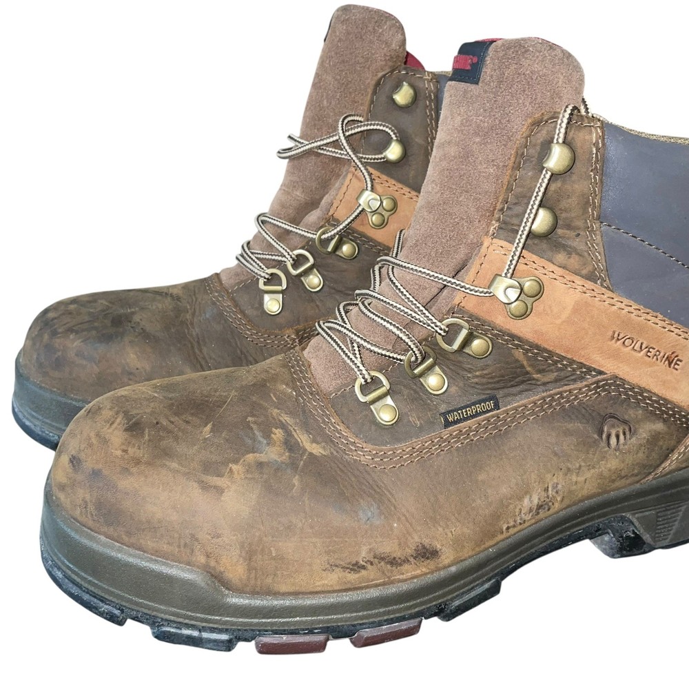 The WOLVERINE Men's Boots in Cabor 6 inch Composite Toe Waterproof design, in a stylish Coffee color, are specifically crafted for industrial and construction workers. Made of durable leather material, these boots provide the required protection and safety for demanding work environments. With a shoe size of 13 for men, these boots offer a comfortable fit while ensuring the feet are shielded from potential hazards on the job. Perfect for those seeking reliable and high-quality work boots that will withstand the rugged conditions of their work environment.