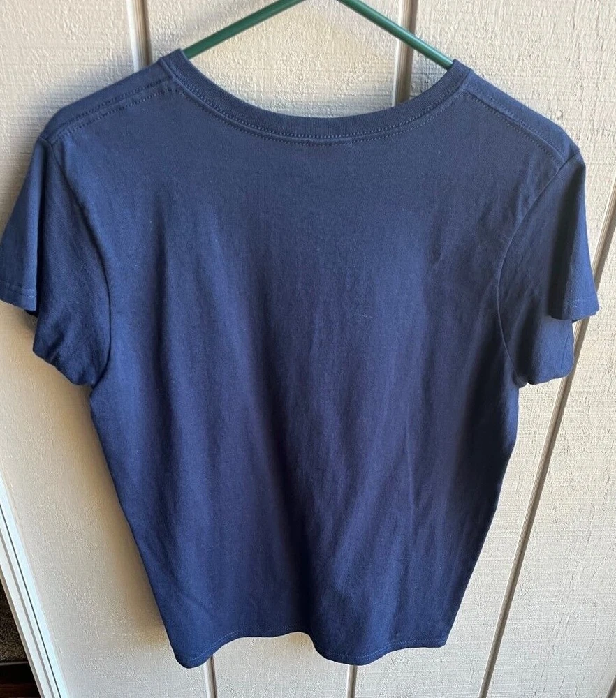 A BRAND NEW CURVES GILDAN ULTRA COTTON T-SHIRT IN A SIZE MEDIUM. NAVY T-SHIRT WITH PINK & WHITE GRAPHIC - "VOTE CURVES FOR LIFE, THE CALORIES HAVE BEEN COUNTED - I WIN, CURVES". ROUND NECK - SHORT SLEEVES. MEASURES APPROX. 25 1/2" FROM SHOULDER SEAM TO BOTTOM OF HEM AND 20" FROM UNDERARM SEAM TO UNDERARM SEAM. FROM A SMOKE FREE HOME. (HANGER NOT INCLUDED)