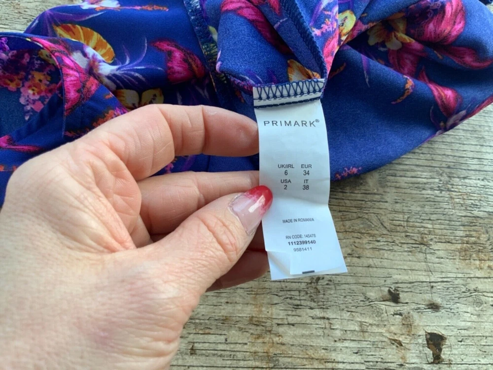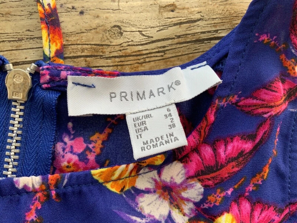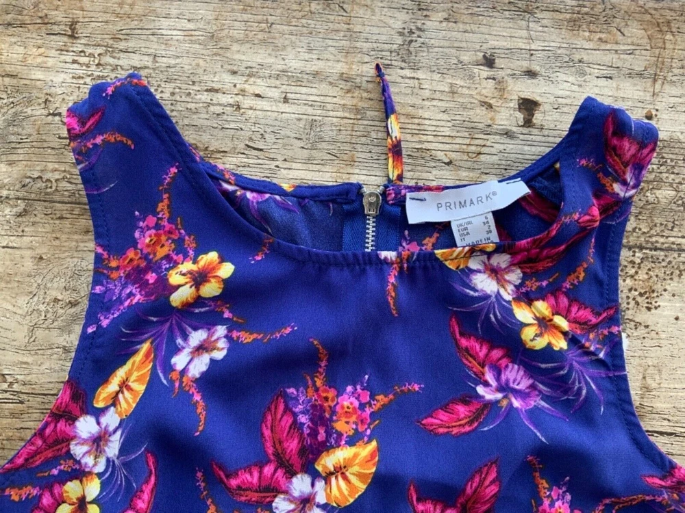 GORGEOUS SUMMER TOP BLOUSE from PRIMARK Superb cut and fit blue floral top SIZE UK 6 has great zip back detail In GOOD used condition