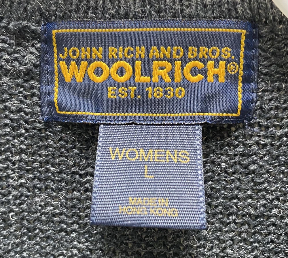 WOOLRICH WOMEN'S Sweater Zip Up Large John Rich and Bros Ramie Blend Laying flat from armpit to armpit approximately 19 1/2" - Length back neck to bottom approximately 25". Shipped USPS Priority Mail