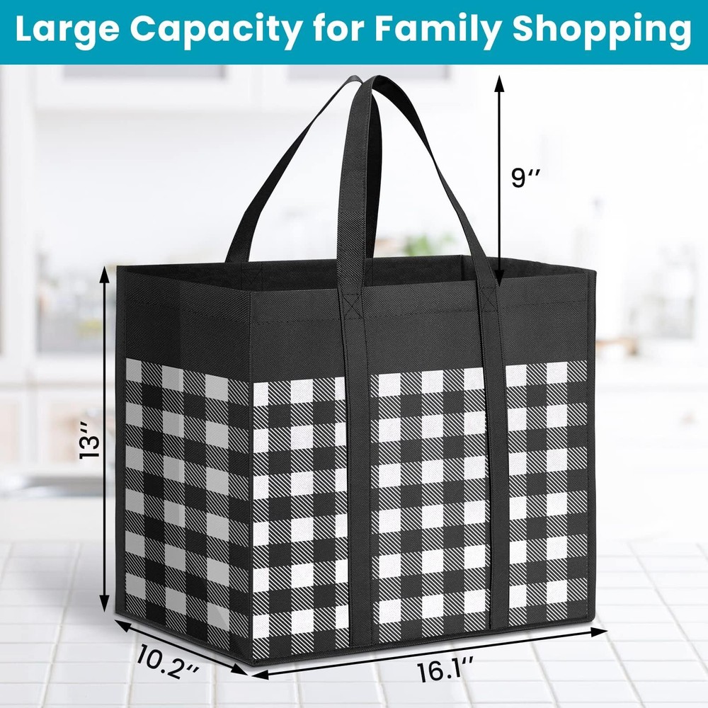 WOWBOX Reusable Grocery Bags,4-Pack, Foldable Reusable Shopping Tote Bags bulk with Reinforced Handles,Large Storage Bags with Water Resistant Coating for Groceries,Multipurpose,Black-White LARGE CAPACITY&FOLDABLE: Extra-large grocery shopping bags can contain up to 35 liters; each reusable shopping bag measures 16.1" x 10.2" x 13" ; when the tote bag is not in use, it folds flat for easy storage in cabinets, trunks, baggage, etc STURDY: high-quality, waterproof, thick non-woven fabric ensures that the bag body is sturdy while the X-shaped handle design makes the bags easy to hold without ripping MULTIFUNCTIONAL: The large-capacity and multi-purpose tote bag is suitable for a variety of places, such as shopping malls, supermarkets, gyms, libraries and camping sites; to go outdoors or travel, keep a convenient bag handy for emergencies EASY TO CLEAN: The tote bags with a waterproof layer are not easily soiled by dirt or stains on the surface; simply wipe it clean with a wet rag, wet paper towel, or disinfectant and let it dry naturally REUSABLE: Convenient reusable grocery bags are the primary choice as an alternative to disposable conventional plastic bags; whether it is for your own convenience and the protection of the planet, reusable bags are a win-win choice Shipping We offer FREE shipping on all orders! We use a selection of shipping services such as UPS, FedEx, USPS etc. We only ship to the lower 48 states, no APO/FPO addresses or PO Boxes allowed. Local pickups and combined shipping options are not provided at this time. Return You can return a product for up to 30 days from the date you purchased it. Any product you return must be in the same condition you received it and in the original packaging. Please keep the receipt. Payment We accept payment by any of the following methods: PayPal Please pay as soon as possible after winning an auction, as that will allow us to post your item to you sooner! Feedback Customer satisfaction is very important to us. If you have any problem with your order, please contact us and we will do our best to make you satisfied. Contact Us If you have any queries, please contact us via ebay. We usually respond within 24 hours on weekdays. Please visit our eBay store to check out other items for sale! Thank you for shopping at our store.