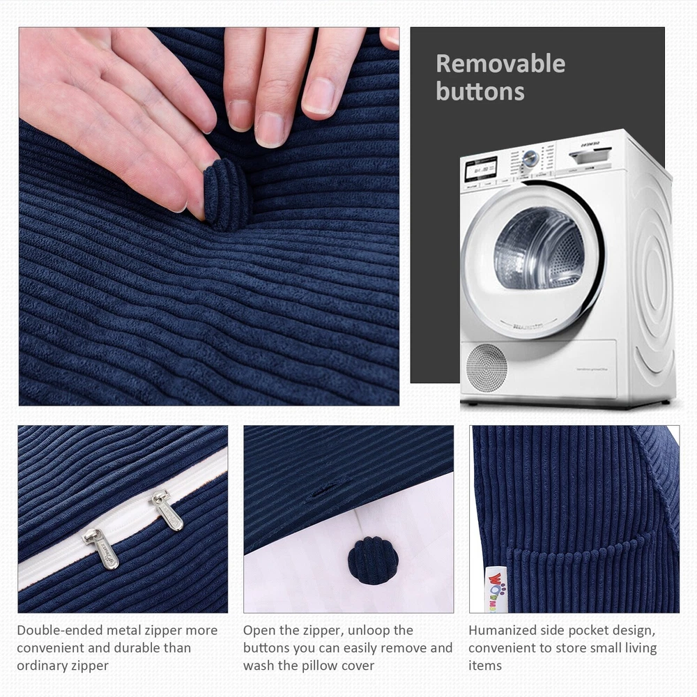 Get comfortable with the WOWMAX Bed Rest Wedge Reading Pillow that provides excellent back support while you sit up in bed to read or watch TV. The pillow's triangular shape fits snugly against your headboard, and its button tufting and smooth fabric cover offer a touch of elegance and comfort.Features: Triangular shape for perfect fit against headboard Supports lower back and spine Thick cushioning made of 100% polyester fiberfill Ornamental buttons for added style Fills the space between the back and headboardDimensions (length x height x depth): Twin/twin XL bed: 39 inches x 20 inches x 8 inches Special size: 47 inches x 20 inches x 8 inches Full bed: 54 inches x 20 inches x 8 inches Queen bed: 59 inches x 20 inches x 8 inches California king bed: 71 inches x 20 inches x 8 Free Shipping Over $49.99* Details WOWMAX Bed Rest Wedge Reading Pillow Headboard Back Support Cushion Product Description: Get comfortable with the WOWMAX Bed Rest Wedge Reading Pillow that provides excellent back support while you sit up in bed to read or watch TV. The pillow's triangular shape fits snugly against your headboard, and its button tufting and smooth fabric cover offer a touch of elegance and comfort. Features: Triangular shape for perfect fit against headboard Supports lower back and spine Thick cushioning made of 100% polyester fiberfill Ornamental buttons for added style Fills the space between the back and headboard Dimensions (length x height x depth): Twin/twin XL bed39 inches x 20 inches x 8 inches Special size47 inches x 20 inches x 8 inches Full bed54 inches x 20 inches x 8 inches Queen bed59 inches x 20 inches x 8 inches California king bed71 inches x 20 inches x 8 inches King bed76 inches x 20 inches x 8 inches Tips: Color/size differences may occur due to different computer monitors or machine cuttings. The bottom is about 8" thick and may take up the length of the mattress, requiring it to be placed against the wall or back frame as a "standing" headboard. The buttonhole is designed slightly larger than the button to ease detaching, which is NOT a fabric tear or defect! If a button shifts in the buttonhole, revealing the white lining, kindly push the button back until it covers the buttonhole again.