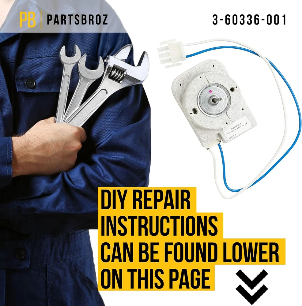 The WP3-60336-001 Evaporator Fan Motor is a direct replacement for part numbers WP3-60336-001, AP6007509, 3-60336-001, 1621561, 4390914, 68001613, and PS11740626, the perfect fit for your refrigerator. The WP3-60336-001 Evaporator Fan Motor is compatible with Whirlpool WP3-60336-001 and also compatitable with Maytag, Amana, and Crosley Refrigerators, offering wide compatibility for your convenience. The refrigerator is experiencing issues like being noisy and too warm, indicating a need to replace the WP3-60336-001 Fan Motor. Replacing it can restore cooling and quiet operation. High-Quality Materials: Our replacement parts are crafted from premium materials to ensure durability and long-lasting performance, providing you with reliable solutions for your home appliances. Wide Compatibility: Designed to fit a variety of popular home appliance models, our replacement parts offer a convenient and versatile solution to keep your appliances in top working condition. Product Description How to replace a WP3-60336-001 Evaporator Fan Motor? Replacing a WP3-60336-001 Evaporator Fan Motor involves several steps. Here's a general guide to help you: Turn off the power to the refrigerator: Before you start the repair process, it's crucial to unplug the refrigerator or turn off the power supply to avoid electric shock. Remove the back panel of the freezer: Locate the back panel of the freezer, usually at the rear of the unit, and remove it. You may need to use a screwdriver or socket wrench to unscrew the bolts holding the panel in place. Remove the old fan motor: Once you've gained access to the fan motor, unplug its wiring harness and remove any screws or bolts holding it in place. Take note of how the fan blade is attached to the motor shaft, as you will need to reattach it to the new motor. Install the new fan motor: Install the new fan motor by securing it with the screws or bolts you removed in step 3. Reattach the fan blade to the motor shaft in the same orientation as before. Reconnect the wiring harness: Reconnect the wiring harness to the new fan motor, ensuring that it's securely plugged in. Replace the back panel: Once you've completed the installation of the new fan motor, replace the back panel of the freezer and secure it with the screws or bolts you removed earlier. Turn on the power: Finally, turn the power supply back on or plug in the refrigerator and test the new fan motor to ensure that it's functioning correctly. It's important to note that the steps above are general and may vary slightly depending on the make and model of your refrigerator. General tips to help you finish your DIY repair safely as soon as possible Wear work gloves . DIY project something can be a messy, intensive process, and it is important to take safety precautions to avoid cuts and injury. One of the best ways to do this is by wearing gloves whenever you are working on a home repair. It will help protect your hands from sharp objects, debris, and other potential hazards. Clean up any spills or messes immediately . Cleaning up spills and messes is important during a home improvement project because it helps prevent damage to the device or equipment. Spills of liquids like oil, water, or cleaning solutions can get into sensitive electrical components, causing corrosion and other dangerous problems. Disconnect appliances when not in use . It can help reduce the risk of electrical shock or other injuries. Additionally, it can minimize the risk of damage to the appliance, which can save you time and money in the long run. Finally, it can help minimize energy consumption, which is important for reducing your carbon footprint. Our brand produces parts that: Can be easily installed and removed Are fully compatible with most major brands Meet all OEM standards, while taking care of your budget Will make your appliance work like a new one WP3-60336-001 3-60336-001 Evaporator Fan Motor High-quality replacement part for a quick DIY This part will help if: Appliance is noisy Appliance is too warm PART NUMBER 3-60336-001: It's a high-quality exact equivalent for part numbers AP6007509, 4390914, 68001613, PS11740626, WP3-60336-001. COMPATIBLE BRANDS INCLUDE: Whirlpool, Amana, Crosley, Maytag. COMPATIBLE WITH PRODUCT TYPE: Freezer, Refrigerator. Compatible with Whirlpool : DUF570WDD01, EL7JWKLMQ02, EL7JWKLMQ03, EL7JWKLMQ04, EL7JWKLMS02, EL7JWKLMS03, EL7JWKLMS04, EL88TRRWQ01, EL88TRRWQ02, EL88TRRWS01, EL88TRRWS02, EV160NZTQ00, EV160NZTQ01, EV161NZRQ00, EV161NZRQ02, EV161NZRQ04, EV161NZRQ05, EV161NZTQ00, EV161NZTQ01, EV165NXTN00, EV171NYMQ00, EV171NYMQ01, EV171NYMQ02, EV171NYMQ03, EV171NYMQ04, EV171NYMQ05, EV171NYMS00, EV171NYMS01, EV171NYMS02, EV171NYMS03, EV171NYMS04, EV171NYMS05, EV181NZTQ01, EV181NZTQ02, EV188NYWQ00, EV188NYWQ01, EV188NYWS00, EV188NYWS01, EV188NYWV00, EV200NZTQ00, EV200NZTQ01, EV201NXMQ00, EV201NXMQ01, EV201NXMQ02, EV201NXMQ03, EV201NXMQ04, EV201NXMQ05, EV201NZRQ00, EV201NZRQ01, EV201NZRQ04, EV201NZRQ07, EV201NZTQ00, EV201NZTQ01, EV201NZTQ02, EV205NXTN00, EV205NXTN01, EV205NXTN02, EV205NZTQ00, EV209NBTN00, EV209NBTQ00, EV209NBTQ01, EVL165NXRQ00, EVL165NXRQ03, EVL165NXRQ04, EVL201NXRQ00, EVL201NXRQ01, EVL201NXRQ04, EVL201NXRQ05, EVL201NXRQ06, EVL202NXTN00, EVL202NXTN01, EVL202NXTN02, EVL209NBTQ00. Compatible with Maytag : MQF1656TEW00, MQF1656TEW01, MQF2056TEW00, MQF2056TEW01, MQU1556AEW, MQU1656BEW, MQU2057AEW, MQU2057BEW. Compatible with Crosley : WCF15E, WCF16W3, WCF17ER, WCF20E. Compatible with Amana : AQF1613TEW03, AQF1613TEW04, AQF2013TEW03, AQF2013TEW04. ATTENTION : This is not a complete list of compatible models. You are welcome to reach our support if you are not sure about the compatibility of your appliance. Fast Search Find your parts in a quick and simple way. Search symptoms of your broken appliance or ask for our advice! DIY Quick Fix Our appliance parts will help you to make a fast replacement for your refrigerator & freezer . Simple manipulations will help you to fix everything within fe