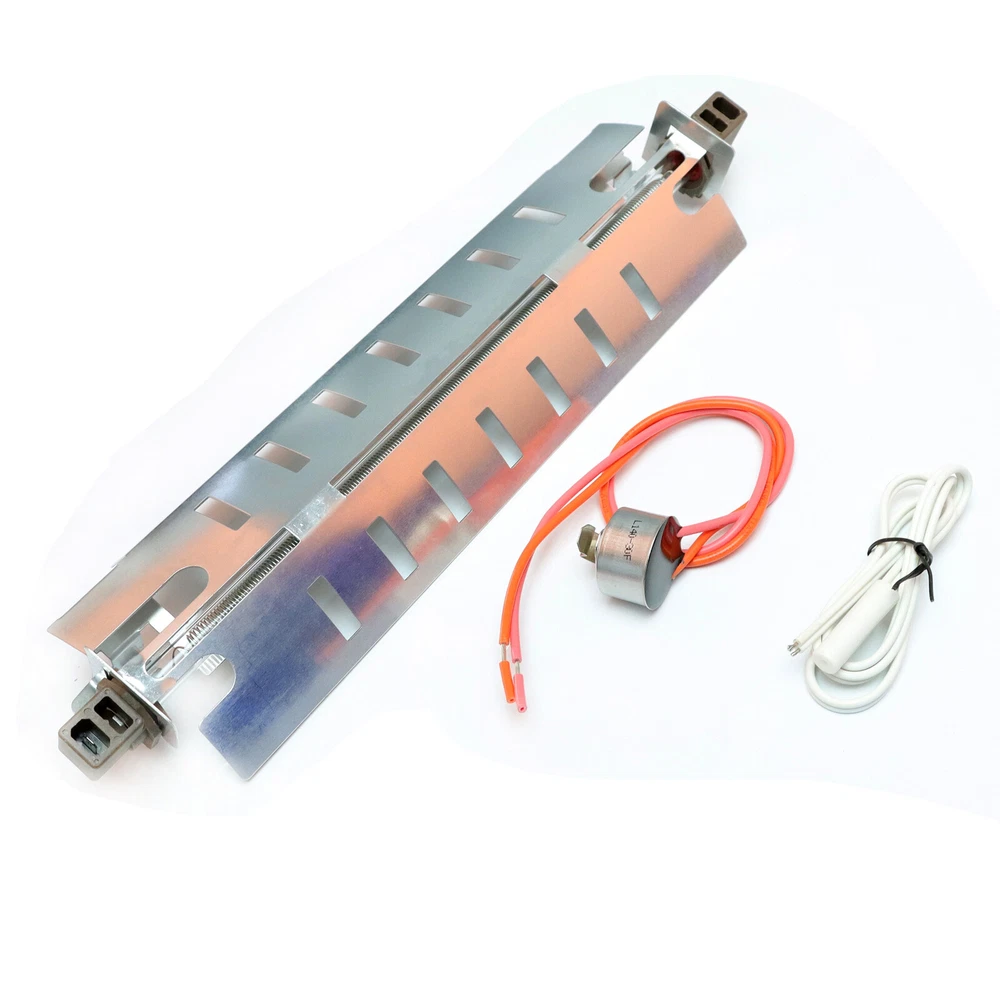 Item always Will Be Sent Out in 24 Hours From Monday to Saturday From California USA With USPS Tracking No. Features: Premium Material and Quality: Made of sturdy metal materials, the refrigerator defrost heater ensures lo ng service life and compatibility, durable to use. Powerful Function: No need to worry about food becoming not fresh, WR51X10055 this part can melt ice and frost around the coil to keep food better.WR55X10025 the aim of sensor is to send the present temperature reading towards the control board.WR50X10068 this part would shut off and cut off the defrost' s electricity when the temperature reached a degree. Save Your Money: With the portable refrigerator defrost heater kit, you do not need to spend hundreds of dollars to replace the refrigerator, convenient and space saving. The kit is designed for Kenmore refrigerators, please check your models before purchase. Replacement Models: The WR51X10055 defrost heater replaces part numbers: WR51X1003, AP3183311, PS303781, 914088, AH303781, EA303781, PS30378, WR51X10030. The WR55X10025 temperature sensor replaces part numbers: 914093, AP3185407, WR50X10027, WR50X10034, WR50X10055, WR50X10067, WR55X10025, WR55X10026, WR55X1002. The WR50X10068 defrost thermostat replaces part numbers: PS1017716, 1170024, AP3884317, WR50X10015,WR50X10017,WR50X10018,WR50X10028,WR50X10051, WR50X10500X50X50X50X50X50X050X0. Package Includes: The package includes 1 x refrigerator defrost heater WR51X10055, 1 x refrigerator temperature sensor WR55X10025, 1 x refrigerator defrost thermostat WR50X10068, complete set of refrigerator defrost replacements. The kit is designed for Kenmore, GE, Hotpoint, RCA. Specifications: Material: Metal Fitment: For Kenmore, for GE, for Hotpoint, for RCA Color: Silver Heater Size: about 31 x 7.3cm/12.2 x 2.87in Notes: Please allow a slight dimension difference due to different manual measurements. Due to the light and screen setting difference, the item's color may be slightly different from the pictures. Package Contents: 1 x Refrigerator Defrost Heater 1 x Refrigerator Temperature Sensor 1 x Refrigerator Defrost Thermostat Payment 1.We only accept PayPal. Credit card payment can also be made via PayPal.eBay Immediate Payment via PayPal. 2.Please fill in a valid contact address. Shipment Items are usually shipped 1 business days after payment has been received. We do not ship on weekends and holidays. Sellers are not responsible for service transit time. Transit times are provided by the carrier, exclude weekends and holidays, and may vary with package origin and destination, particularly during peak periods. Return Policy Out 30-day Satisfaction Guarantee assures our customers that they will receive all orders promptly and exactly as described. In addition , it allows customers to return new and unused products in their original factory condition for any reason within 30 days from the date of purchase. Notice: 1.All returns must be pre-approved by Seller and have a return merchandise authorization (RMA) number. Any problem about item, Please Send the eBay message to us ,we will respone in 24 hours 2.Buyers are responsible for appropriate packing, returning shipping cost, insurance and returning the item in “new” condition. Used items will not be accepted for return. 3.We will replace the returning item with an identical item, issue a full refund. Contact us 1.If for some reason there is any issue with the purchase, please contact us prior to leaving any negative or netrual feedback, and we will work with you to have it resolved.