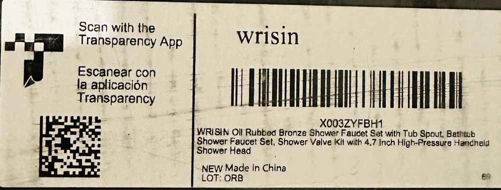 WRISIN Oil Rubbed Bronze Shower Faucet Set with Tub Spout, Bathtub Shower Faucet Set, Shower Valve Kit with 4.7 Inch High-Pressure Handheld Shower Head. Note: Box shows light storage wear; item is unused and in excellent condition, sealed in its original packaging. Please check out my other listings — I add new items daily. Thank you!