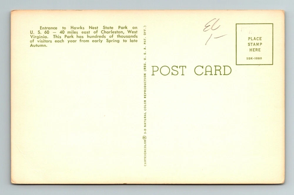 WV-West Virginia, Entrance To Hawk's Nest State Park, Vintage Postcard