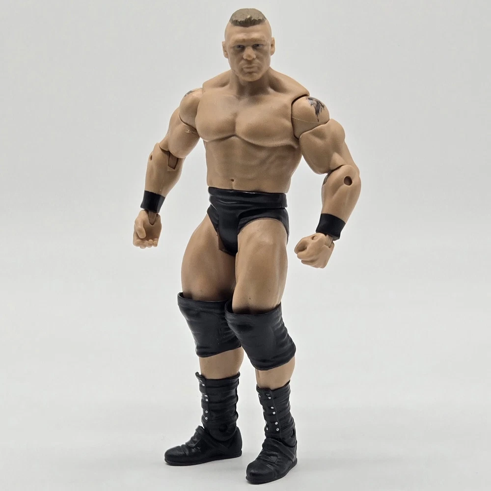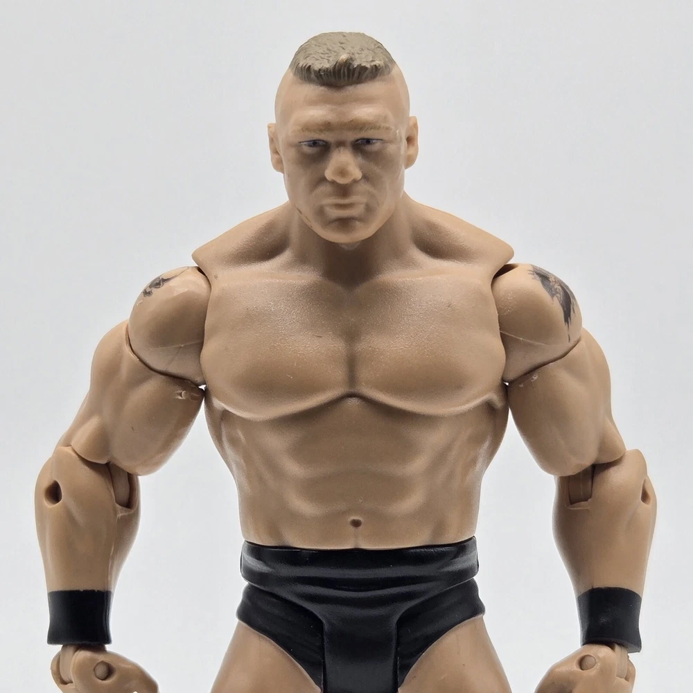 For WWE fans, this Mattel 2011 Basic Series Action Figure of Brock Lesnar is a must-have collectible. This 7-inch plastic figure depicts Lesnar in his UFC Ruthless Aggression gear and comes with knee pads as an added accessory. The multicolor figure is an original, licensed reproduction and is perfect for display or play.