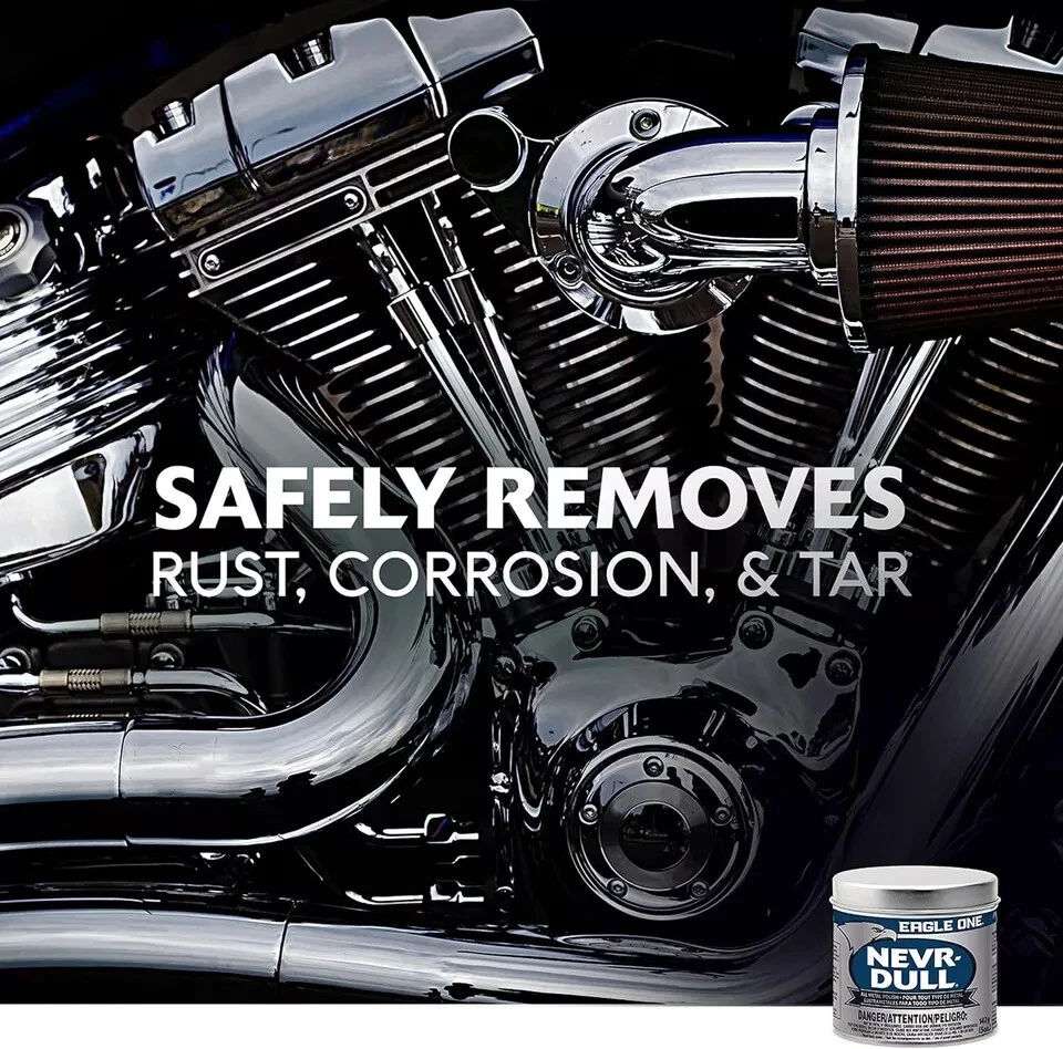 About this item Eagle One Nevr-Dull Wadding Polish protects and restores most metal surfaces to their original sparkling finish Proven for over 70 years to maintain the appearance of your car or truck’s metal surfaces with a mildly abrasive cotton-paste texture Removes rust, corrosion, and tar immediately, without scratching even the most delicate metal surfaces, leaving your car with a sleek shine Polishes to perfection, leaving no deposits behind on your car or truck’s metal work just a mirror-slick gleam that’ll attract admirers near and far Maintains the appearance of any metal surface Remove rust and tar with little mess and easy application Non-abrasive for a gentle, yet detailed clean and polish