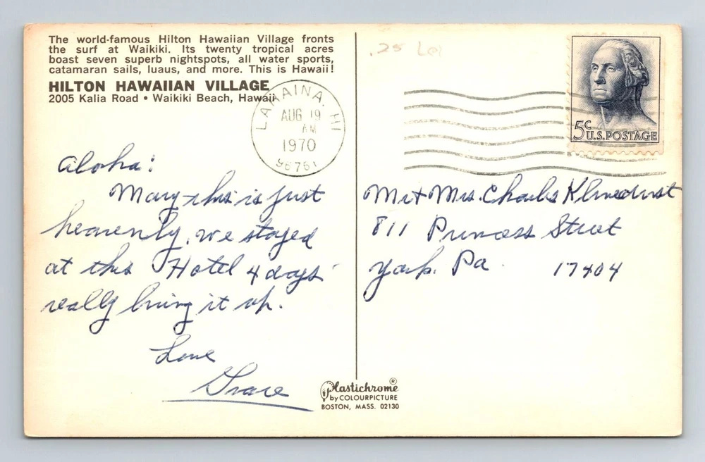 Waikiki Beach HI-Hawaii, Hilton Hawaiian Village, Vintage Postcard