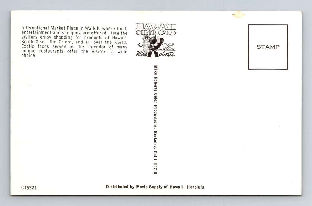 Waikiki HI- Hawaii, International Market Place, Antique, Vintage Postcard