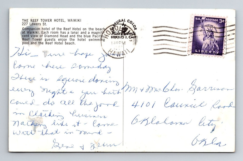 Waikiki HI The Reef Tower Hotel Vintage Postcard Exterior View
