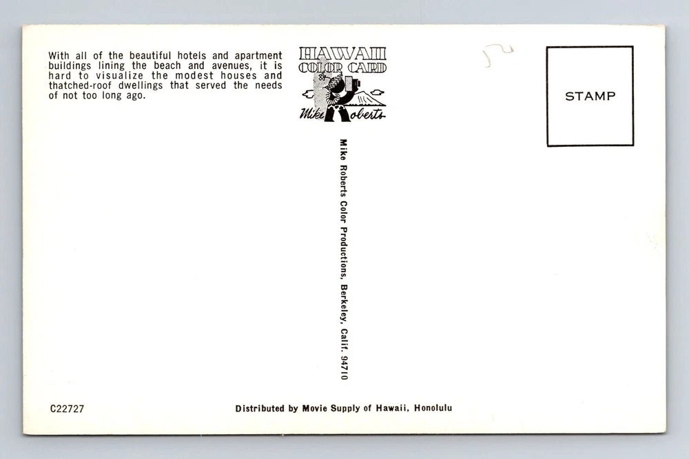 Material: Paper Country: USA Region: Hawaii Theme: Cities & Towns Size: Standard (5.5 x 3.5 in) Original/Licensed Reprint: Original Postage Condition: Unposted Country/Region of Manufacture: Unknown Type: Printed (Lithograph) City: Waikiki Subject: Cities & Towns Unit of Sale: Single Unit Era: Vintage
