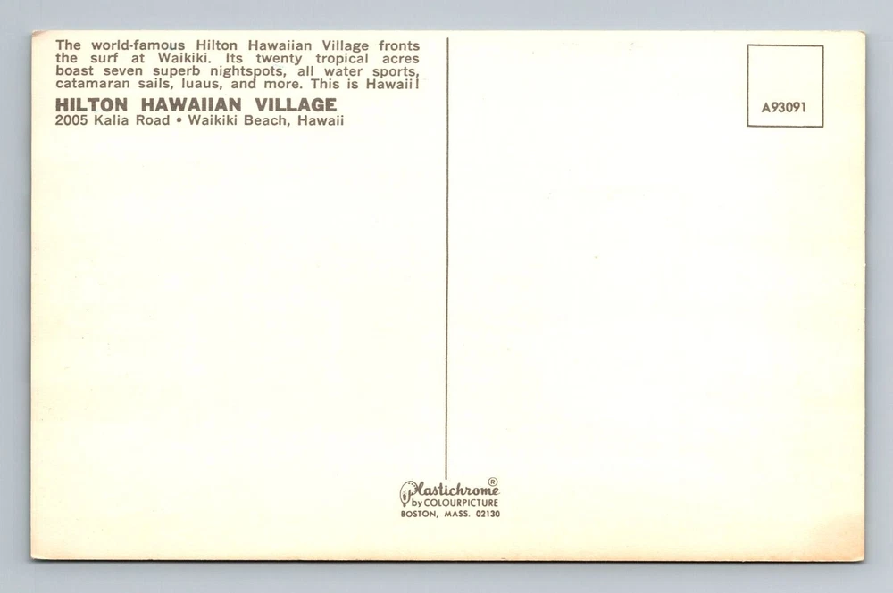 Waikiki HI-Hawaii, Hilton Hawaii Village, Waikiki Beach, Vintage Postcard