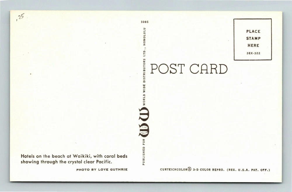 Unit of Sale: Single Unit Era: Chrome Theme: Cities & Towns City: Waikiki Type: Printed (Lithograph) Postage Condition: Unposted Country/Region of Manufacture: United States Subject: Cities & Towns Original/Licensed Reprint: Original Region: Hawaii Country: USA