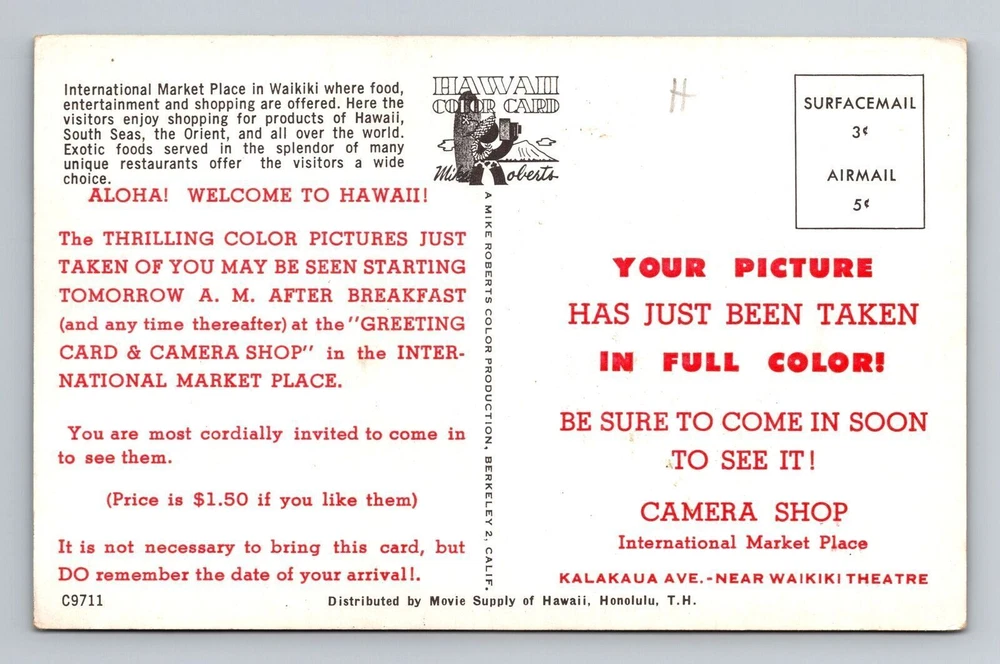 Waikiki HI-Hawaii, International Market Place, Antique, Vintage Postcard