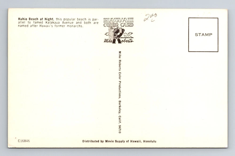 Waikiki HI-Hawaii, Kuhio Beach At Night, Antique, Vintage Postcard