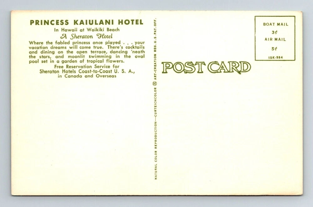 Waikiki HI-Hawaii Princess Kaiulani Hotel Aerial Scenic View Vintage Postcard