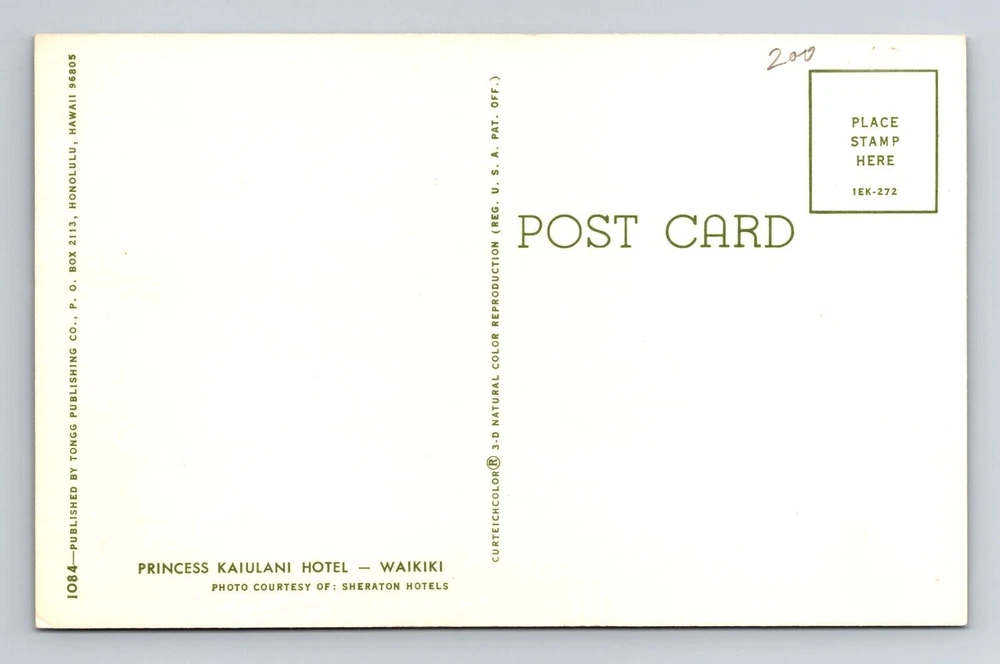 Waikiki HI-Hawaii, Princess Kaiulani Hotel, Souvenir, Vintage Postcard