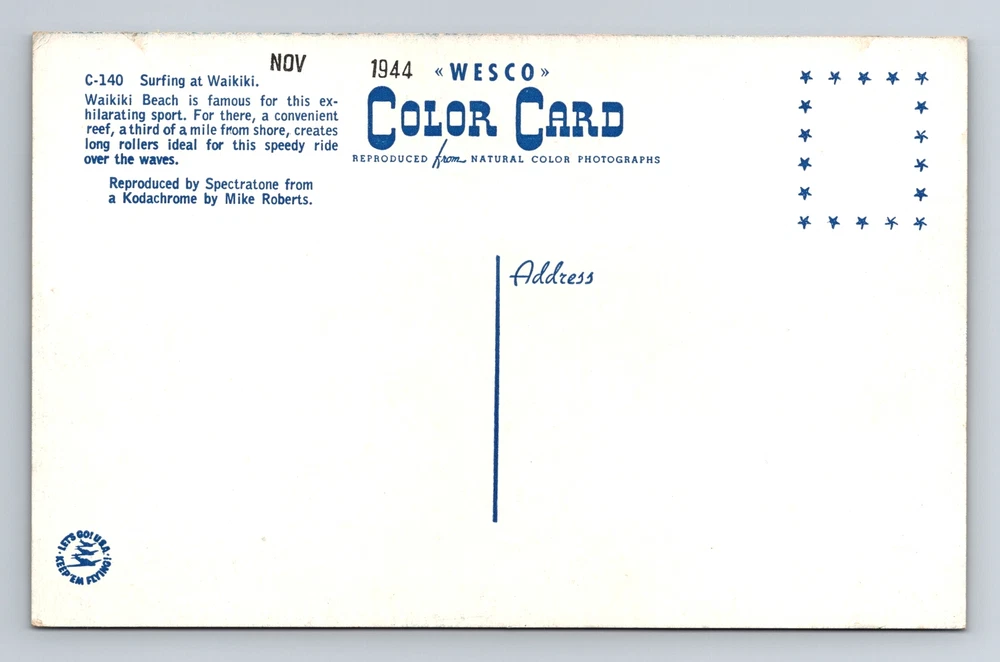 Country: USA Era: Vintage Original/Licensed Reprint: Original Unit of Sale: Single Unit Type: Printed (Lithograph) Region: Hawaii Postage Condition: Unposted City: Waikiki Country/Region of Manufacture: Unknown Theme: Cities & Towns Subject: Cities & Towns