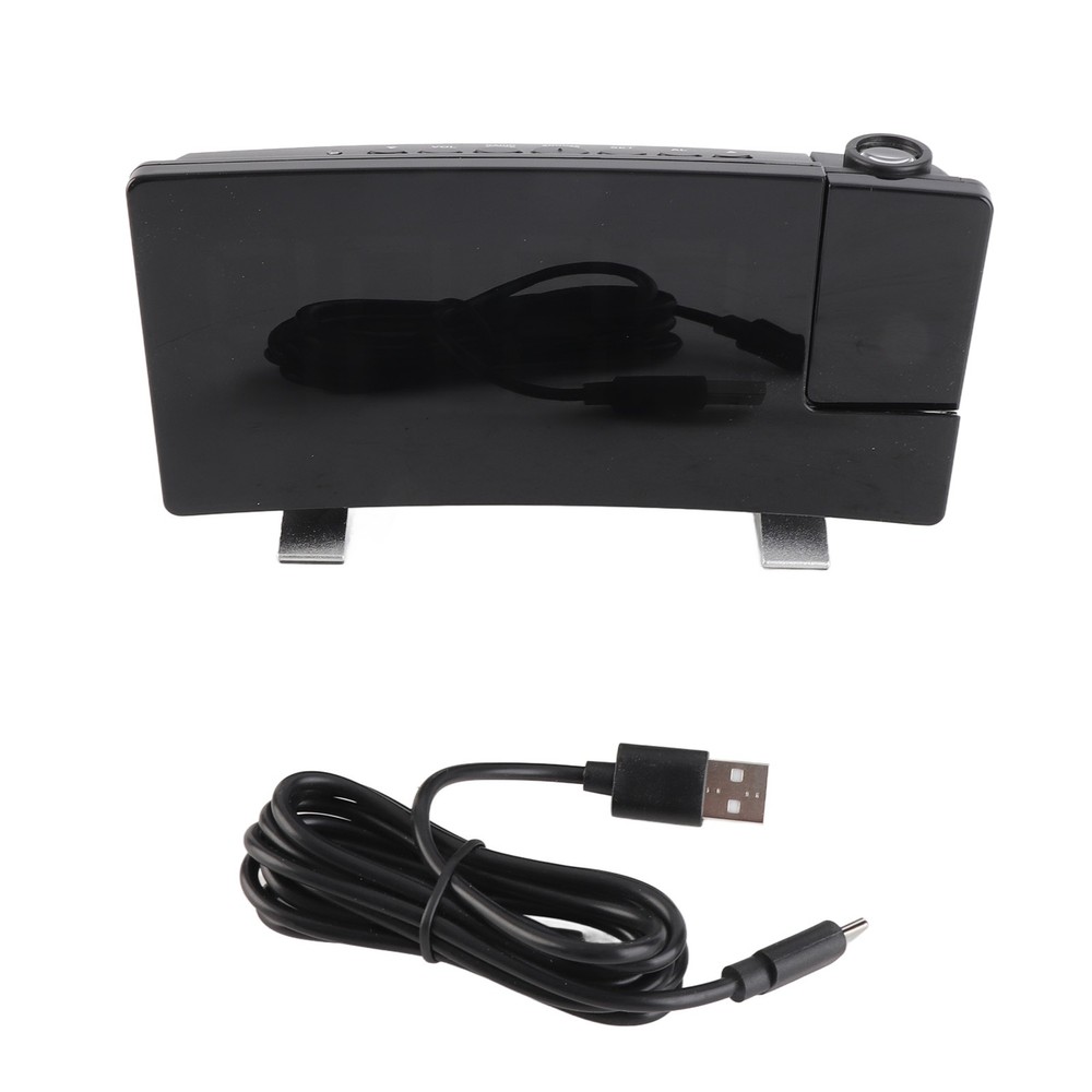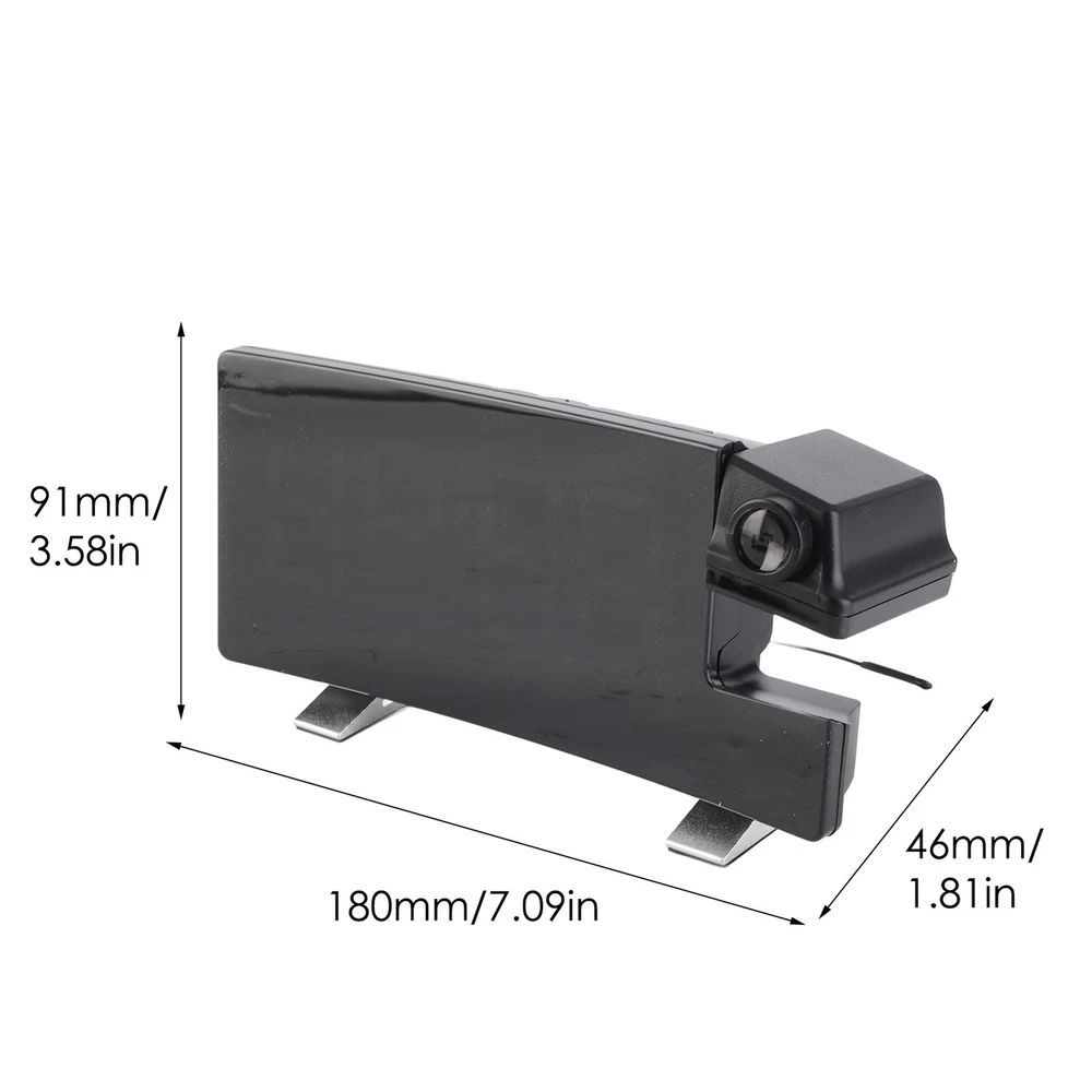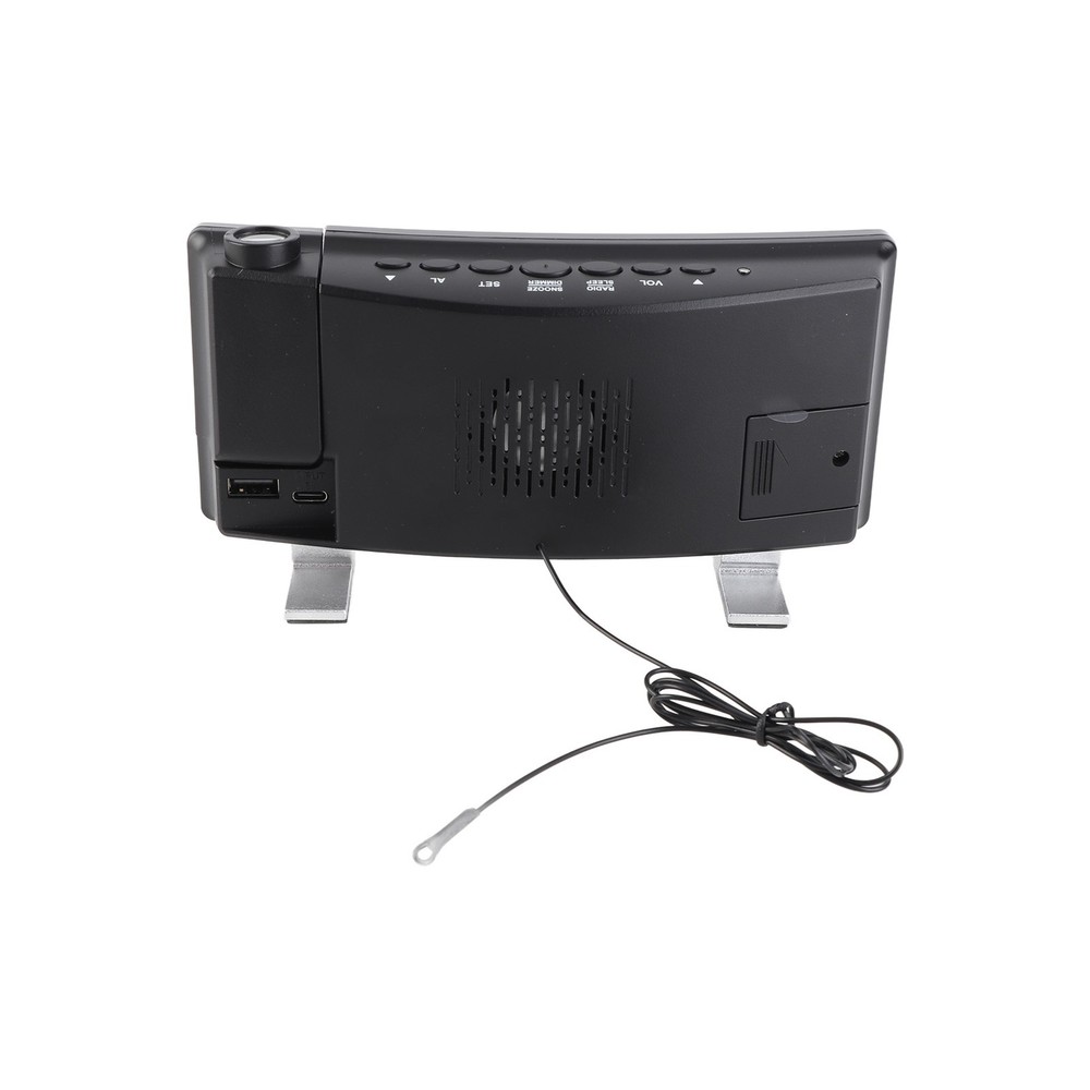 Feature: 1. FM76-108 frequency range, and can storage 15 radio channel, strong and powerful. 2. Adopt 4Ω 3W trumpet, professional amplifier circuit design, provides great sound quality. 3. 0-10 levels volume adjust design, you can hear sounds clearly from different distance. 4. 8 inch large digital display, can be used as an alarm clock and timer. 5. Large font display, easy to read. 6. Double alarm clock setting, never miss any important affair. 7. 2 alarm modes, you can use beeping or FM radio. 8. 3 display brightness level adjustable, photoinduction stepless dimming, very convenient. 9. Designed with 180° rotatable projector and projects ultra clear time onto wall or ceiling within 3.0m projection distance, allowing you easily watch it even lying on the bed, projector 2 level brightness adjustable. 10. Built in li cell to ensure time memory function when power failure, no need to reset. 11. 12 hours and 24 hours adjustable, you can adjust it according to your using habit. 12. The product includes a USB cable, which provides an alarm clock function and can also be easily charged. 13. Adopt metal stand, suitable for study, office, bedroom, living room, kitchen, etc. Specification: Specifications: Name: Alarm Clock Material: ABS Cell: 1 * 3V, 240mAh (included) Item size: 180 * 46 * 91mm / 7.09 * 1.81 * 3.58in Item weight: 220g / 7.76ounce Package List: 1 * Alarm Clock 1 * USB Cable 1 * Instruction Manual
