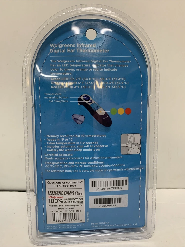 Brand:WalgreensFeatures:Waterproof, Display in Celsius and Fahrenheit, Infrared, LED Color Coded, DigitalModified Item:NoCustom Bundle:Nogtin13:311917199306UPC:311917199306MPN:791393Model:791393
