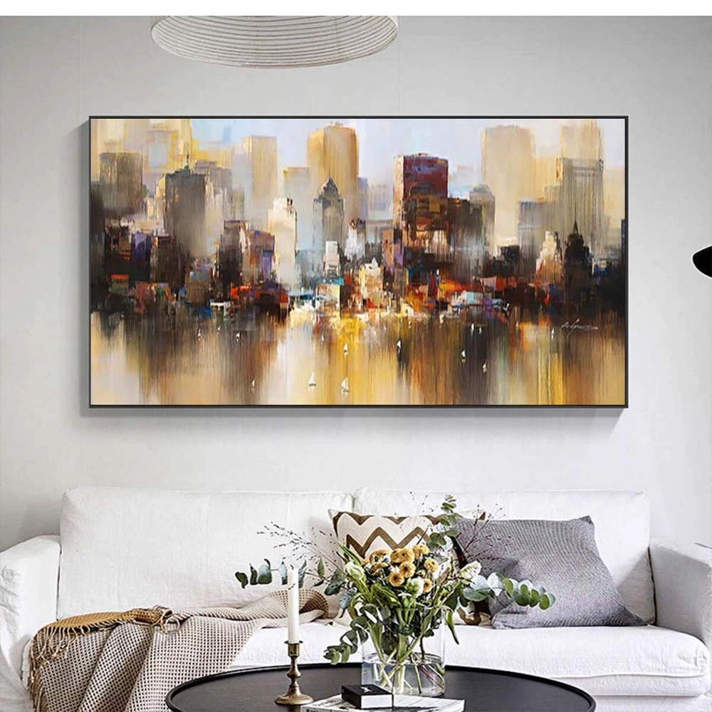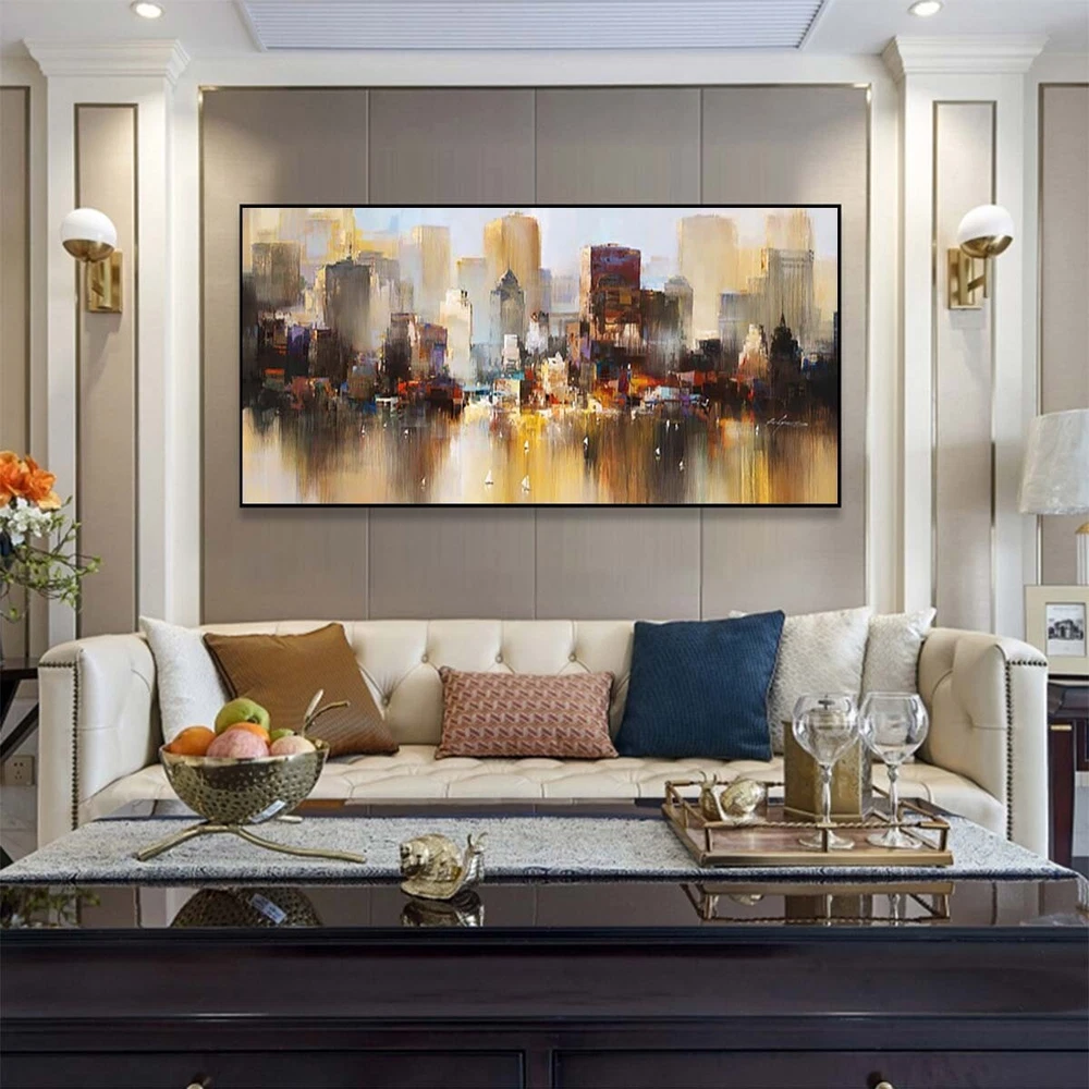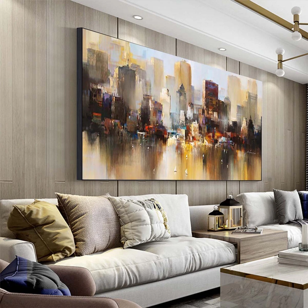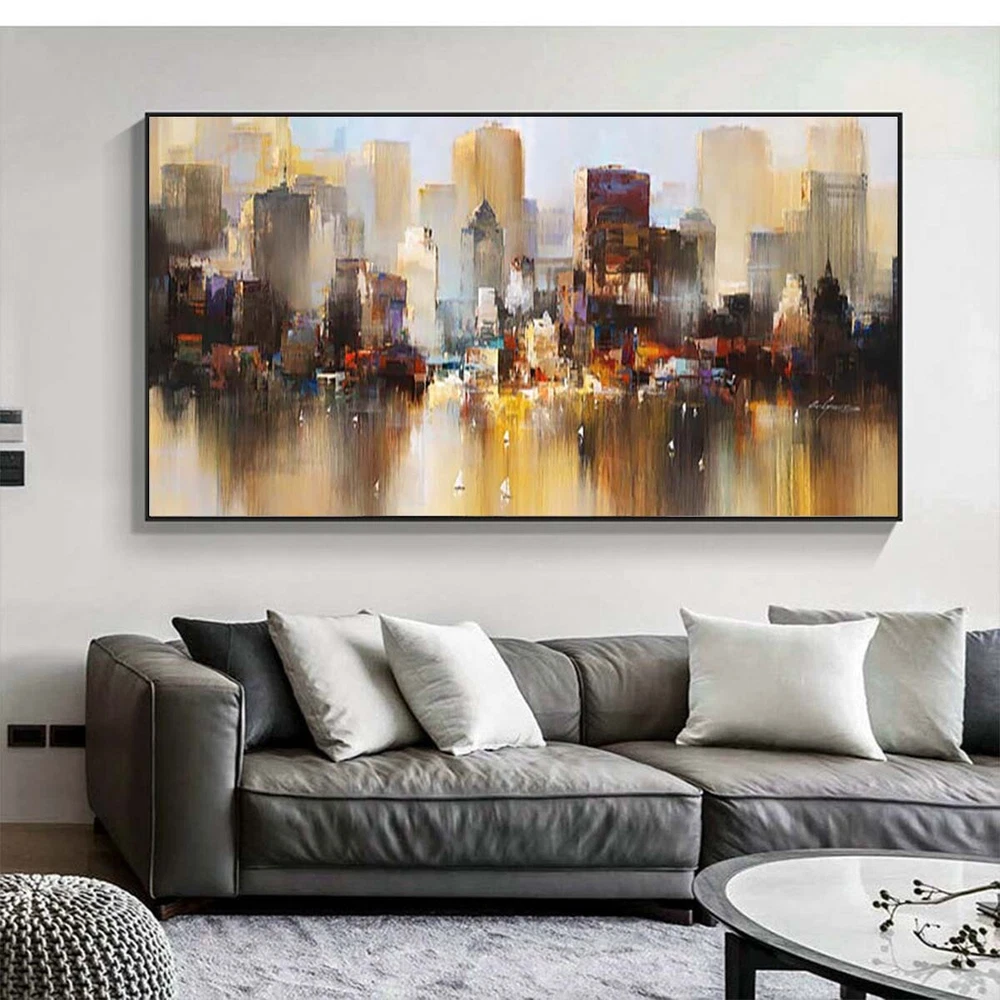 Wall Art Cityscape Oil Painting Hand Painted Decorative Modern Abstract Urban B