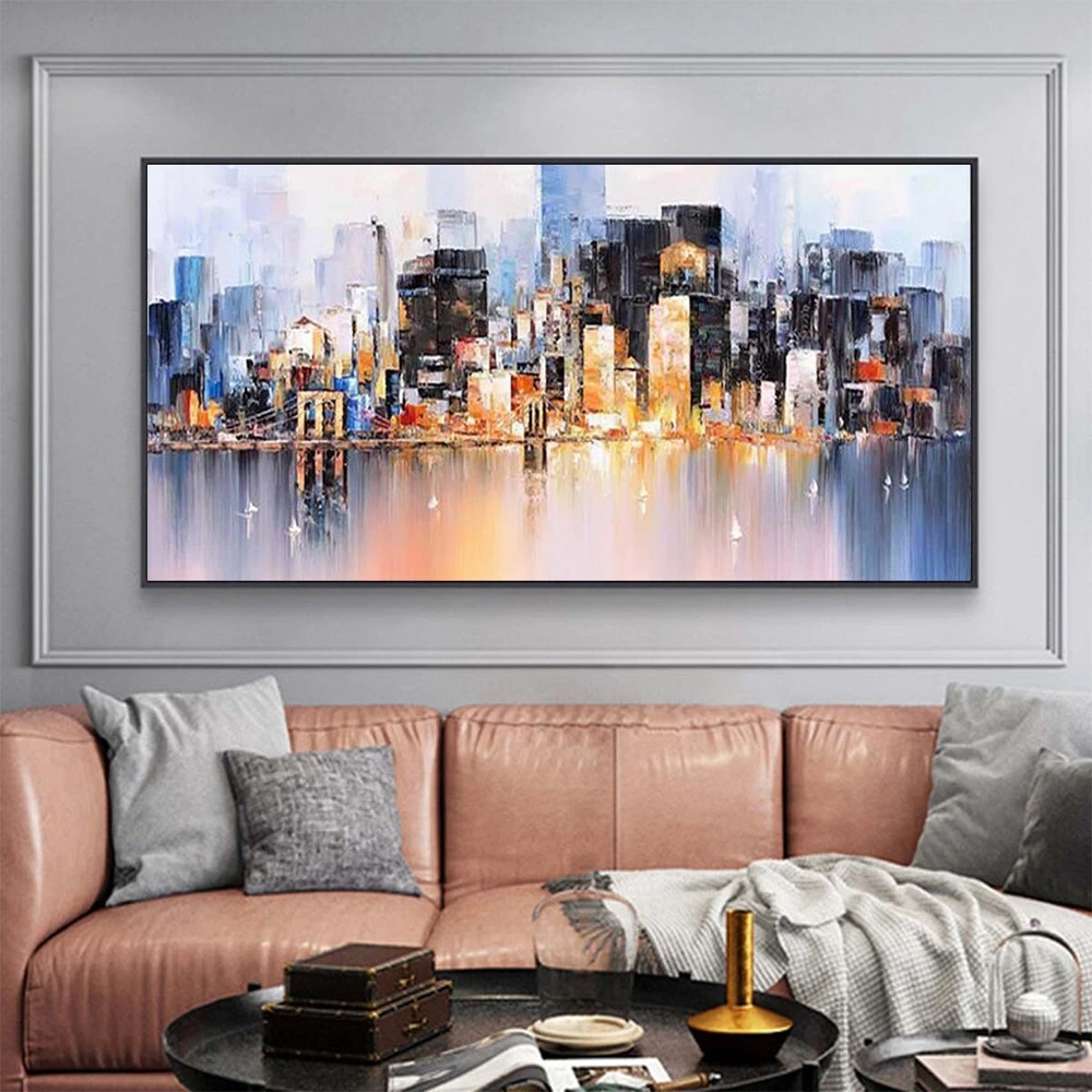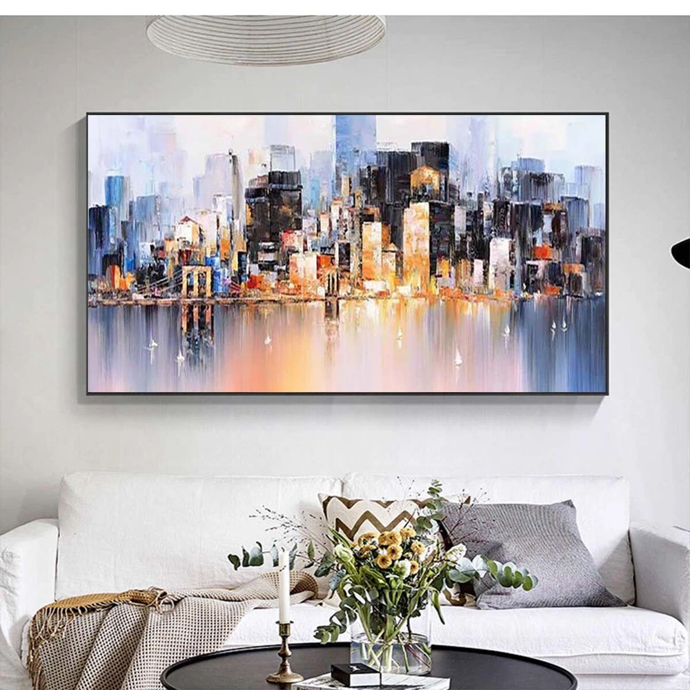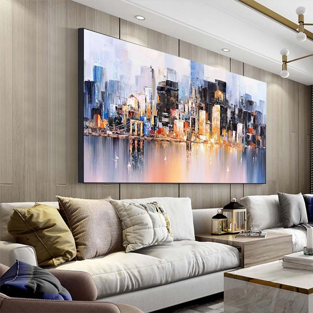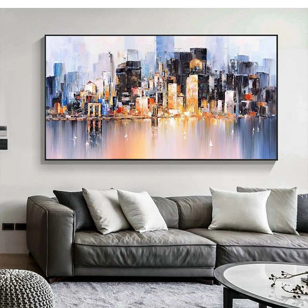 Wall Art Cityscape Oil Painting Hand Painted Decorative Modern Abstract Urban F
