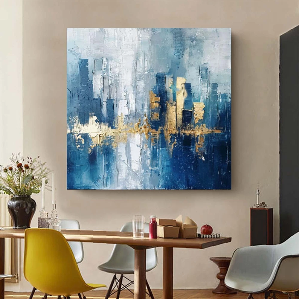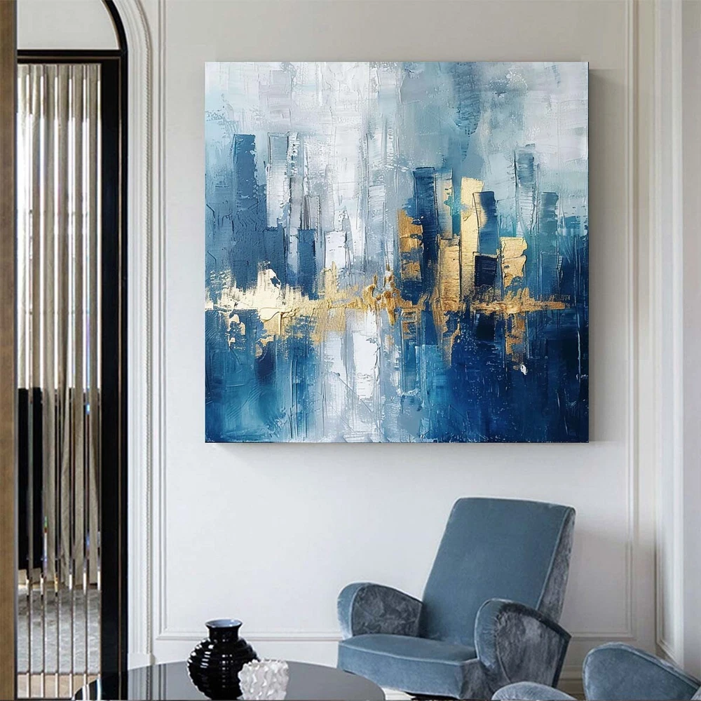 Wall Art Cityscape Oil Painting Hand Painted Decorative Modern Abstract blue