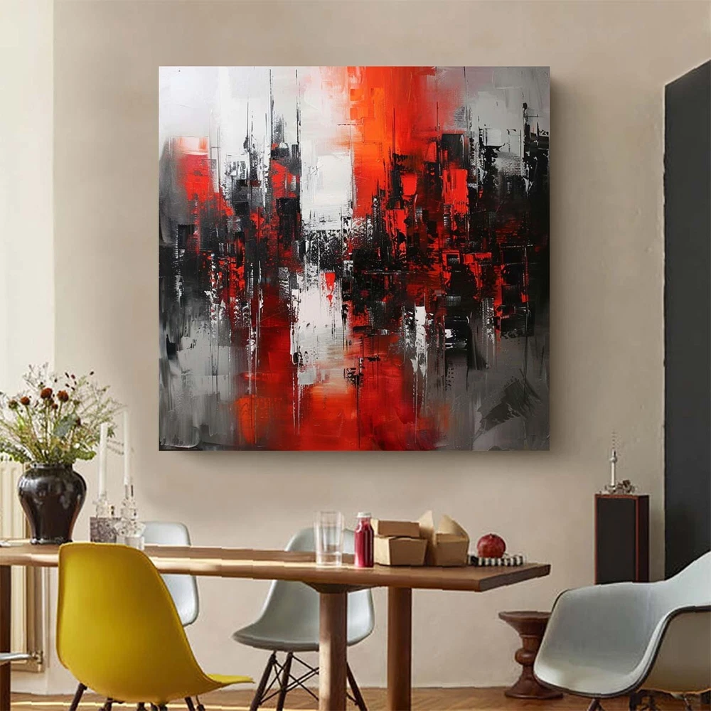 Wall Art Cityscape Oil Painting Hand Painted Decorative Modern Abstract red