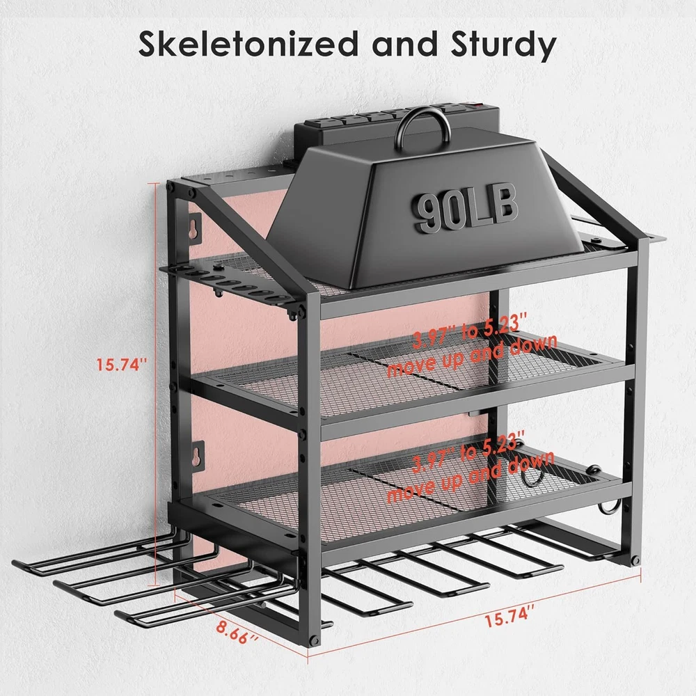 Power Tool Organizer Wall Mount with Charging Station, 4 Layer Storage Rack and Tool Holder for Garage Organization, 6 Drill Holder Wall Mount, 4 Hooks and 6 Outlet Power Strip, Great Men's Gift Item Description About this item Upgraded Tool Organizer with Charging Station: The power tool organizer with power strip is equipped with 6 outlets and is very convenient for charging tool batteries. This power tool organizeris suitable for a variety of places such as garages, tool rooms, yards and more. 4 Tiers of Efficient Storage: 4 hooks, and a drill holder for 2 drills., 4 layer structure shelf and one layer adjustable for actual needs, can keep rechargeable tools organized in the work area and save your bench space. Drill Holder Wall Mount: Easily hang the tool rack on different walls, such as wall control pegboard, concrete, brick, wood wall, etc., the size of this tool organizer wall mount is 15.75*15.75*8.66 inch, but the skeletonized design allows the tool holder to store longer items. Hold 90 lbs, Easy to Assemble: Made of sturdy steel with precision cut and reinforced construction, holds up to 90 lbs, modular design for easy assembly, comes with instructions and can be set up in less than 15 minutes. Excellent After-sales Service: Our brand offers 48 months after-sales guarantee service for all products, please feel free to contact us if you have any questions. Mens Christmas Gifts : Ideal as a Christmas gifts for men, dad, husband, brother, son, or any man in your life, our power tool organizer blends utility Men style to maximize their garage organization. › See more product details If you have a lot of rechargeable tools, you can charge everything right in the rack and avoid searching for sockets, 5ft power cord included. The double layer is designed to store tool's batteries, etc. Each layer can weigh up to 90IB. 4 hooks for hanging wrenches, tape measures and other items. 6 slots for power tools, reinforced design, strong and durable. Payment We accept payment only through PAYPAL Shipping We ship products worldwide through standard express courier service, it will reach within 7 to 10 days to abroad buyers, we ship the product after recieved clear payment and give full information about shipment to the buyer Return We accept product return within 7 to 21 days from delivery date but product should be in original position and not in damaged condition,the return shipping charges will be buyer responsibility