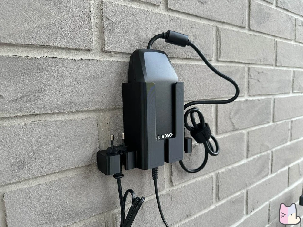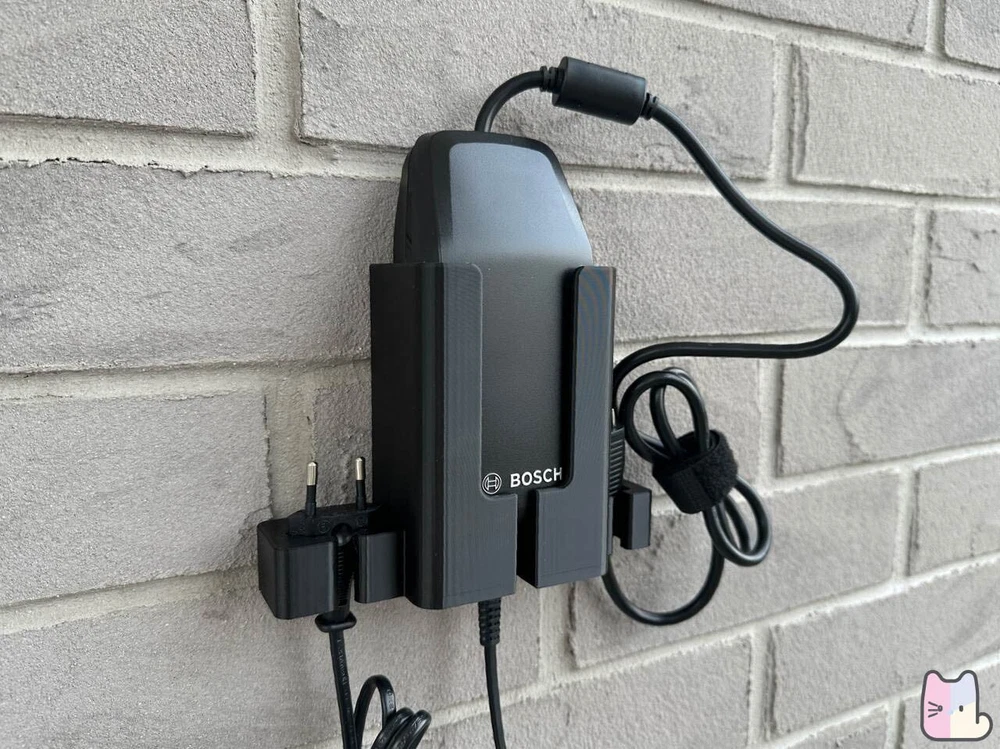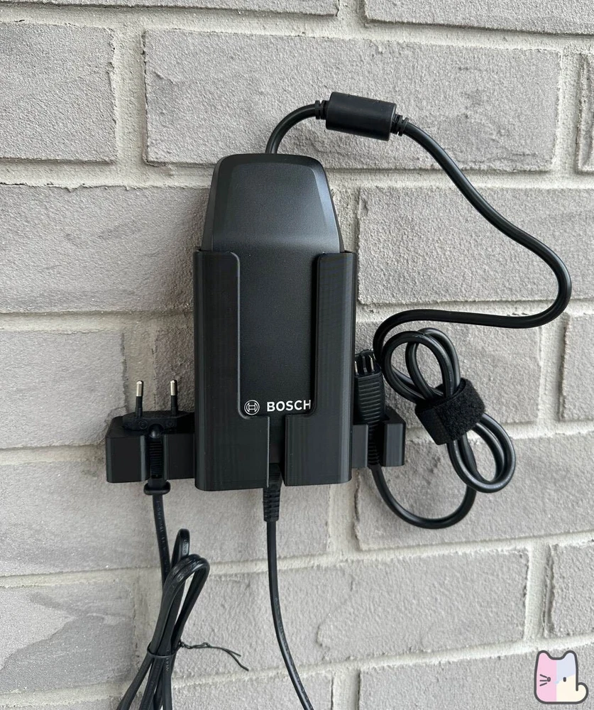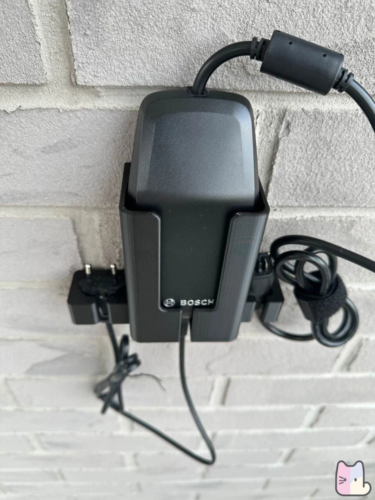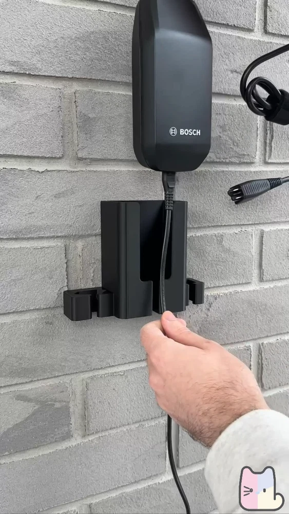 3D printed The product is a Wall Mount designed specifically for Bosch E-Bike Chargers, including models BPC3200, BPC3400, BCS220, BCS230, and BCS250. This mount is intended for securely storing and organizing the charger when not in use. It is likely a custom-designed 3D printed accessory that allows users to conveniently hang their Bosch E-Bike charger on a wall, keeping it easily accessible and out of the way. Perfect for those looking to keep their charging setup tidy and maximize space efficiency in their cycling storage area.