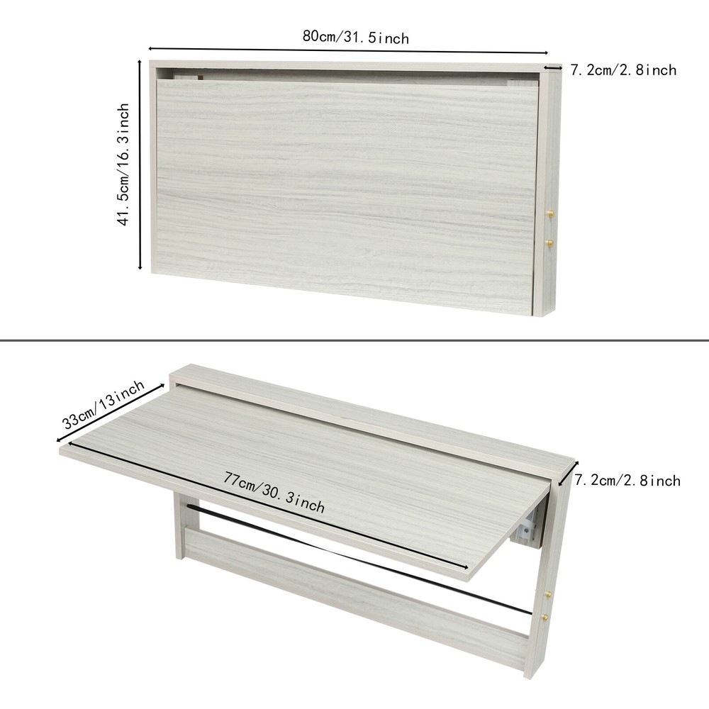 Light Gray Wall Mounted Folding Table, Folding Wall Table For Hoom, Office Welcom to ristarstore! Description This wall-mounted folding wall table cleverly utilizes space. It is made of premium material, which is load-bearing and durable. When unfolded, it is an ideal partner for your work and study; when folded, it instantly releases space, so that even small households can enjoy a large pattern life. Simple design easily fits into various home styles, so every inch of space shows wisdom and taste. Key Features Made to Last: Made of premium MDF with sealed edges, it is waterproof and wear-resistant , ensuring long-lasting use. Life Helper: The spacious desktop (30.3*13in) is convenient for holding all kinds of books, magazines, laptops, and other daily necessities. It can be used as a home office workstation, workbench, laundry table, sewing station, and so on. Space Saving: The wall-mounted design doesn't need to take up floor space, and you can press its folding switch to press down 90° to fold it into a compact size of 31.5*2.8*16.3in, thus saving valuable living space. After folding, the upper part can also be used as a storage shelf for some simple items. Stable Support: The 15mm premium MDF and stable iron triangular support frame can ensure strong load bearing, so you can use it with peace of mind. Aesthetically Pleasing: The classic light gray color and simple shape complement each other, which can be harmoniously matched with most decorative styles, adding a sense of fashion to your interior space. Easy to Clean: Its surface is very smooth and flat, and not easy to accumulate dust and stains, you can use a rag (not included) to wipe it to maintain a bright appearance. Easy to Install: It doesn't require you to do extra assembly, just fix it on the wall with expansion screws (not included) and you can start to use it. Customer Service: We aim to provide quality products and services. If you have any problems, please feel free to contact us. We will reply and solve the problem for you as soon as possible. Details Elastic Ropes: They can hold the books and magazines etc. in the storage rack better and prevent them from falling accidentally. Extended Folding Switch: It is convenient for you to fold the table quickly and easily. Application It can hold a variety of books, magazines, laptops, and other daily necessities, and can be used as a children's table, laptop table, dining table, study table, work table, coffee table, sewing station, etc. in living rooms, bedrooms, offices, study rooms, dining rooms, homes bars, kitchens, laundry rooms, making your life and study easier. Specification Mount Type: Wall-mounted Assembly Required: No Board Thickness: 15mm/0.59in Material: MDF, Iron Color: Light Gray Shape: Rectangular Process: Edge Sealing Folding Angle: 90 ° Desktop Size: 77*33cm/30.3*13in Number of Elastic Ropes: 2 Folded Size: 80*7.2*41.5cm/31.5*2.8*16.3in Package Size: 83*44*11cm/32.68*17.32*4.33in Gross Weight: 8.3kg/18.3lbs Net Weight: 8kg/17.64lbs Package Included 1* Folding Wall Table Notes Please check the style and size before purchasing. Please do not immerse it in water. Please note that the product requires you to provide expansion screws to mount on the wall. Please allow the slight color difference caused by the shooting light and 1-3cm error due to manual measurement and make sure you do not mind before ordering. Payment Delivery details Terms of sales About us Contact us Payment We accept ebay payment 。 Fees such as import duties, taxes are not included in the item price or shipping costs. These charges are the buyer's responsibility. Delivery details Shipping: 2-9 working days to: USA Terms of sales We maintain high standards of excellence and strive for hundred percent customer satisfaction. Feedback is very important to us. We hope that you contact us immediately before you give neutral or negative feedback, so that we can address your concerns. It is impossible to address issues if we do not know about them! About us Your satis faction is our ultimate goal. We work hard to earn your trust and future business. Our certified technicians have tested each item before shipping. The unit comes with 1 year limited warranty on all manufacturing defects. a) If you receive a defective item, you may return it or ask for a discount. Please contact us within 14 days after you receive the package. b) What you returned must be intact and in its original packaging as re? u. Customer is responsible for shipping costs of the returned item. c) We will cover the cost of shipping back t with the shipping rate indicated in the registration page. We will send you a new unit or refund the full payment you paid. Thank you. Contact us Business Hour Business Hour: Monday To Friday: 8:30 AM to 5:00 PM (Beijing China time) Due to time zones, our reply to your questions may not be immediately. But within above working time, we will reply your email within 24 hours. If it's non-workdays, please kindly be patient and wait till Monday. Please contact us with ebay message. Please feel free to contact us if you have any questions. Monday To Friday: 8:30 AM to 5:00 PM (Beijing China time) Due to time zones, our reply to your questions may not be immediately. But within above working time, we will reply your email within 24 hours. If it's non-workdays, please kindly be patient and wait till Monday. Please contact us with ebay message. Please feel free to contact us if you have any questions.