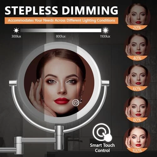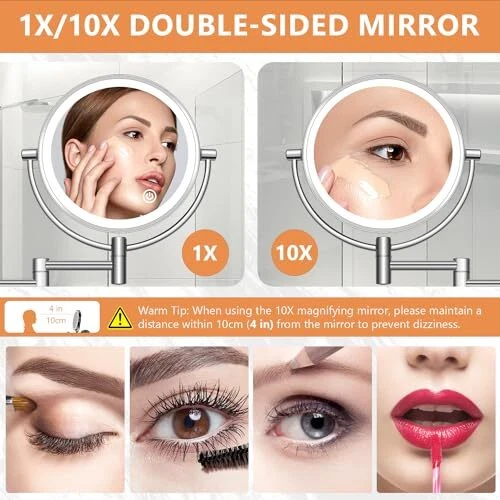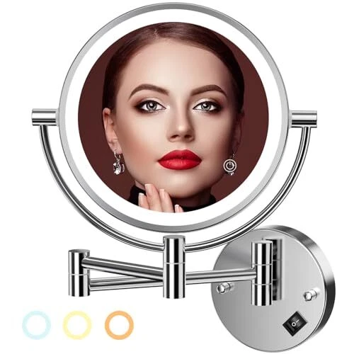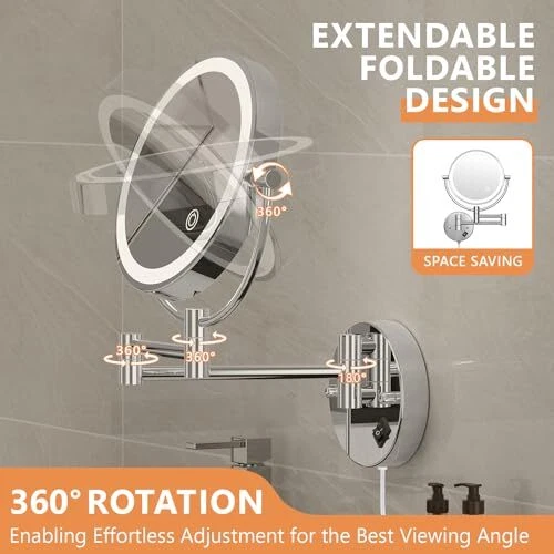 Return Policy Fast Delivery Trusted seller Wall Mounted Lighted Makeup Mirror, 8" Double Sided 1X/10X Magnifying Vanity Mirror, 3 Color Lights, Touch Dimmable Bathroom Cosmetic Mirror with 360 Swivel Extendable Arm, Plug-in, Chrome Product Description ?【? ???? & ??/??? ?????? ?????】From 10X magnifying side, it magnifies every detail on face. Achieve a natural look using the regular side and utilize the 10X magnification for flawless eyebrow shaping, precise eyeliner application, shaving and more. 【WARM TIP】 When you use the 10X mirror side, you have to get your face close (WITHIN 4 INCH) to the mirror in order to see clearly and avoid feeling dizzy. It’s not a product defect, but rather a natural physical occurrence in concave mirrors. ?【?????????? ??? ??????】This Bathroom Mirror features a total of 54 LED lights, offering 3 different light colors - warm white, natural light, and warm yellow. The brightness of the lights is adjustable, with the simple touch of a button, you can select the desired light color for your specific needs. ?【?? ???? & ?????? ??????】No batteries required as the mirror is powered by AC power plug, eliminating the need for constant battery replacements or constant recharging, making it convenient and eco-friendly. ?【???°?????? ??????????】It can be rotated 360°. The illuminated wall-mounted mirror with an extendable arm allows you to position your mirror for perfect viewing. Easily adjust the arm to your desired angle. When not in use, simply fold the mirror against the wall to save space. ?️【???? ???????????? 】With the included drilling template, you can easily drill the holes and then quickly mount the shaving mirror on the wall. You can follow the step-by-step instructions for installation. ?【????? ???? & ????????? ???????】 wall mounted makeup mirror is a perfect Gift for friend, family or lover. provides 7/24 customer services and 24-months warranty. If you have any inquiries, please don't hesitate to reach out to us! Note that the mirror may not be fully charged upon leaving the factory, so make sure to charge it fully before using it for the first time. Shipping Returns Payment Shipping Shipping is FREE to all addresses other than APO/PO boxes in the lower 48 states. All our stock ships from US-based warehouses. Shipped via USPS or UPS (depending on location and package weight) Unless stated otherwise, all orders will ship within 24-72 hours of your payment being processed. Check our feedback to see the great reviews of FAST shipping we offer. Returns Seller does not accept returns Payment We currently accept payment via eBay managed payments only. Once payment is cleared, we will dispatch your shipment within 1-3 business days. Please refer to the "Shipping" tab for more information regarding shipping speed to your destination.
