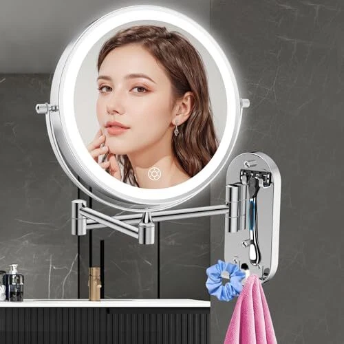 Menu 1. We require immediate payment. 2. We currently accept payment via eBay managed payments only. 3. Once payment is cleared, we will dispatch your shipment within 1-3 business days. Please refer to the "Shipping" tab for more information regarding shipping speed to your destination. Wall Mounted Lighted Makeup Mirror, Rechargeable 8" Double-Sided LED Make up Mirror 1X/10X Magnification, 3 Color Lights Dimmable 360° Rotation Wall Mount Mirror with Extension Arm and Hooks Product description ⭐【Upgraded Wall Mounted Makeup Mirror with Hooks Design】This wall mount makeup mirror has an upgraded multifunctional hook on the base, ideal for hanging towels, razors, shower sponges, and other lightweight bathroom items, ???????? ???????????, ????????? ???????? ????????, ??? ????? ?????.The makeup mirror's frame, column, and base are crafted from expensive pearl nickel and feature a multi-layer electroplating and polishing process, providing durability, moisture resistance, and rust resistance, This ensures suitability for use in bathroom environments. ?【Rechargeable Makeup Mirror with Lights】This makeup mirror features a built-in 2000mAh lithium battery and Type-C charging port for quick recharging. Once fully charged, it provides up to 8 days of usage (30 minutes per day). When the battery is low, you can use the included Type-C charging cable and plug for continuous use. This mirror eliminates the hassle of constantly replacing batteries and offers both wired and wireless power options.( Accessories:A Typr C chrging cable is included, charger not included ) ?【1X/10X Double-Sided Mirror with Magnification】1X/10X can provide the most suitable makeup experience. 10X magnifying makeup mirror can clearly focus on details when applying eyeliner, mascara, grooming eyebrows, or lipstick, making it ideal for creating a flawless and intricate makeup look. Maintain the optimal viewing distance of 4 inches, with a 10X magnification ensuring maximum clarity, providing an ideal solution for precise, intricate makeup application. Enjoy high-definition quality, with no pixel loss and distortion-free zoom. ?【3 Color Lighting & Dimmable wall mounted mirror】This wall mounted vanity mirror provides 3 color lighting options (Cool, Natural, Warm) to simulate makeup for different occasions. White light is used for daily office or home makeup, warm light is used for party or club makeup, and natural light is used for dating or outdoor makeup. A short press on the sensor switch changes the light color, and a long press adjusts the brightness from 0 to 2000Lux, 30% brighter than others, to meet your needs in various environments. ?【360° Swivel Extendable Mirror & Easy to Install】This vanity mirror with lights features a 360° rotation and a foldable arm design, providing a comfortable viewing angle for makeup application, shaving, or wearing contact lenses. The wall mounted mirror can be folded against the wall to save space when not in use. Is very easy to install. You can find all installation information in the pictures or in our packaging. ?【Widely Use & Ideal Gift Choice】This bathroom magnifying mirror can be used in a variety of environments such as bedrooms, bathrooms, hotels, spas and beauty, also be the perfect gift for your family, friends or sisters on birthdays, Christmas, Halloween, Thanksgiving, Mother's Day and Valentine's Day. has a strict quality control system, and we are confident that we offer a 24-month replacement . If any questions about the this wall-mounted cosmetic mirror, please feel free to contact us and we will reply you within 12 hours! PLEASE MESSAGE US IF YOU HAVE ANY OTHER QUESTIONS, AND MANY THANKS FOR READING ALL OF THIS. Copyright ©#. All Rights Reserved.