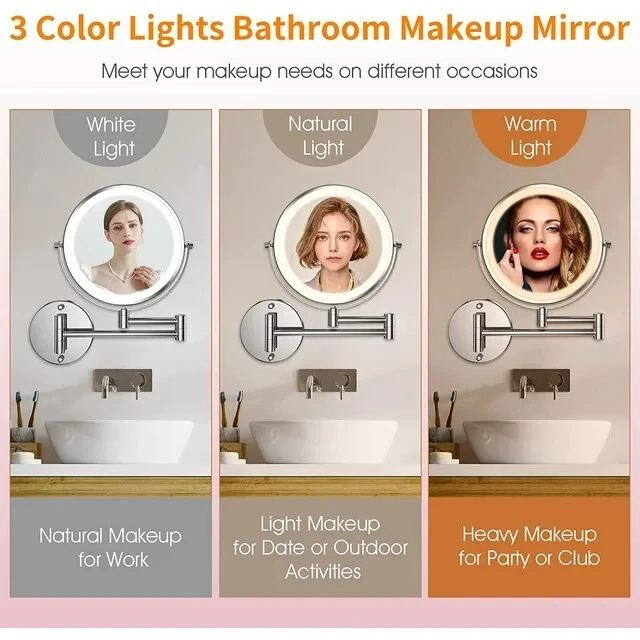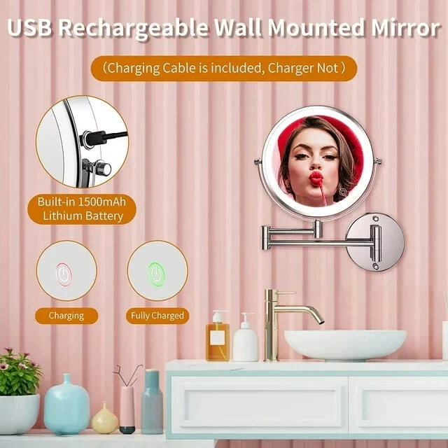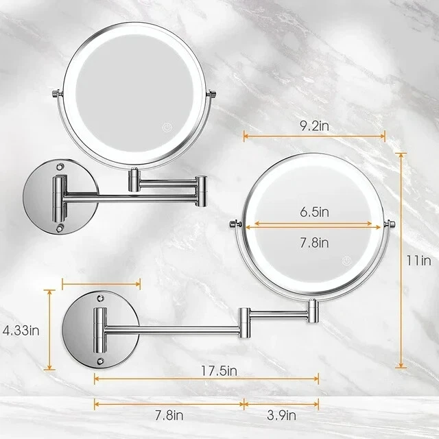 -Brand New - Never Used - Questions: Feel free to ask any Questions - BOX: Never Opened - DESCRIPTION: MATEPROX 8 Inch Rechargeable Wall Mounted Bathroom Lighted Makeup Mirror with 1X 10X Magnification (Silver) * Three Color Lights and Brightness Adjustable * 1. The magnified lighted makeup mirror has 3 color lighting modes: white lights, warm lights and natural lights, select different lighting to avoid makeup disaster and embarrassing situation. * 2. LED lights are controlled by the smart touch sensor switch on the mirror face, simply touch the sensor switch to change the 3 light colors, and hold it for seconds can adjust the brightness. * 🔋USB Rechargeable - This MATEPROX lighted makeup mirror has a built-in 1500 mAh rechargeable lithium battery, continuously works for up to 3-5 hours after fully charged. It can be charged through USB by powerbank, PC, etc. No need to charge frequently or change batteries anymore, very convenient to take everywhere.(Charging cable included, charger not) * 🔍Double Sided 1X 10X Magnifying Mirror - Double Sided design with 1X 10X Magnification, the 1X magnifying mirror reflects your overall makeup, and the 10X magnification on the other hand shows details of your face. Magnifying mirror is perfect for exquisite makeup like eyeliner, mascara, eyebrows, contact lens, etc. ( Recommended distance for using the 10X mirror: ≤4 inch ) * 💖360° Rotation & Extendable Design- This lighted vanity mirror designed with extendable arm and is mounted on the wall. 360 degree free rotation allows you to find a comfortable viewing angle when putting on makeup, shaving, squeezing and wearing contact lenses etc.The vanity wall mounted mirror can be folded against the wall to save space when not in use. * High Quality & Easy to Install - The mirror frame, column and base of this rechargeable lighted makeup mirror are made of high quality and expensive metal material, which is chemically stable with strong anti-corrosion properties. This bathroom makeup mirror is wall mounted style, very easy to install and no professionals needed. All the installation accessories and instructions come with mirror in the package. * Ideal Gift Choice & Warranty - it is an ideal gift choice for mother, sisters, wife, girlfriend, makeup artist on Mother's Day, Valentine's Day, Christmas, Anniversaries or other special occasions. If you have any problem with this makeup mirror in daily use, please feel free to let us know. We will do our best to get back within 24 hours, and provide you with a reasonable solution. - OFFERS: Reasonable offers are considered, LOWBALLERS, Best price and Lowest askers will be ignored - all sales final/no refunds/ no exchanges/ no returns - Disclaimer: I do not own the brand's trademarks, logos, pictures, or products posted. I do not intend to infringe on copyright. I find such content available on the internet. Contents are considered fair use. - MATEPROX Wall Mounted Makeup Mirror, 8" Lighted Extendable 1x 10x Magnify LED Shaving Mirrors
