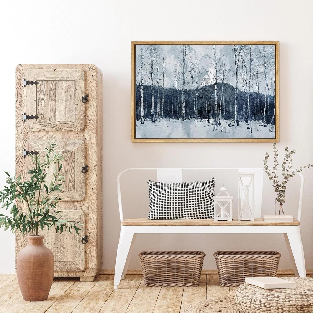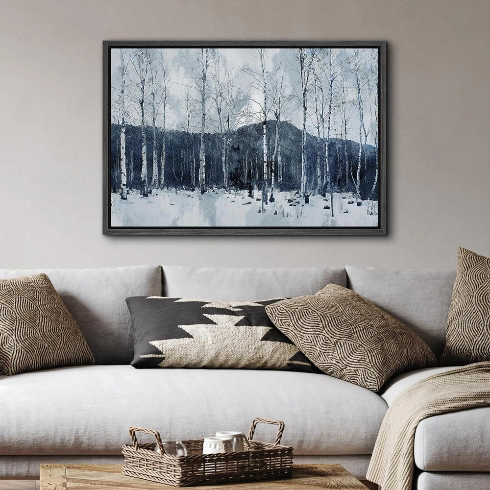 Winter Birch Trees Minimalist Landscape Abstract Art - Impressionist Monochrome Forest Landscape Digital Art High quality printed canvas stretched and stapled to durable shrink resistant frames. 1.50" thick stretcher bars for gallery quality profile. Canvases are printed and hand stretched in the USA by professionals. Hanging accessory kit included. All Wall26® Products are made in and shipped from the USA.Be aware of counterfeit sellers with inferior products. Our products will never ship from China or overseas. We use high quality canvases which are designed specifically for canvas printing. Our canvas is a white semi-gloss artists canvas. We use latest HP Latex inks during printing process allowing our products to be fade resistant for up to 100 years. Canvas pictures are stretched on wooden stretcher frames. All frames are of the highest quality.