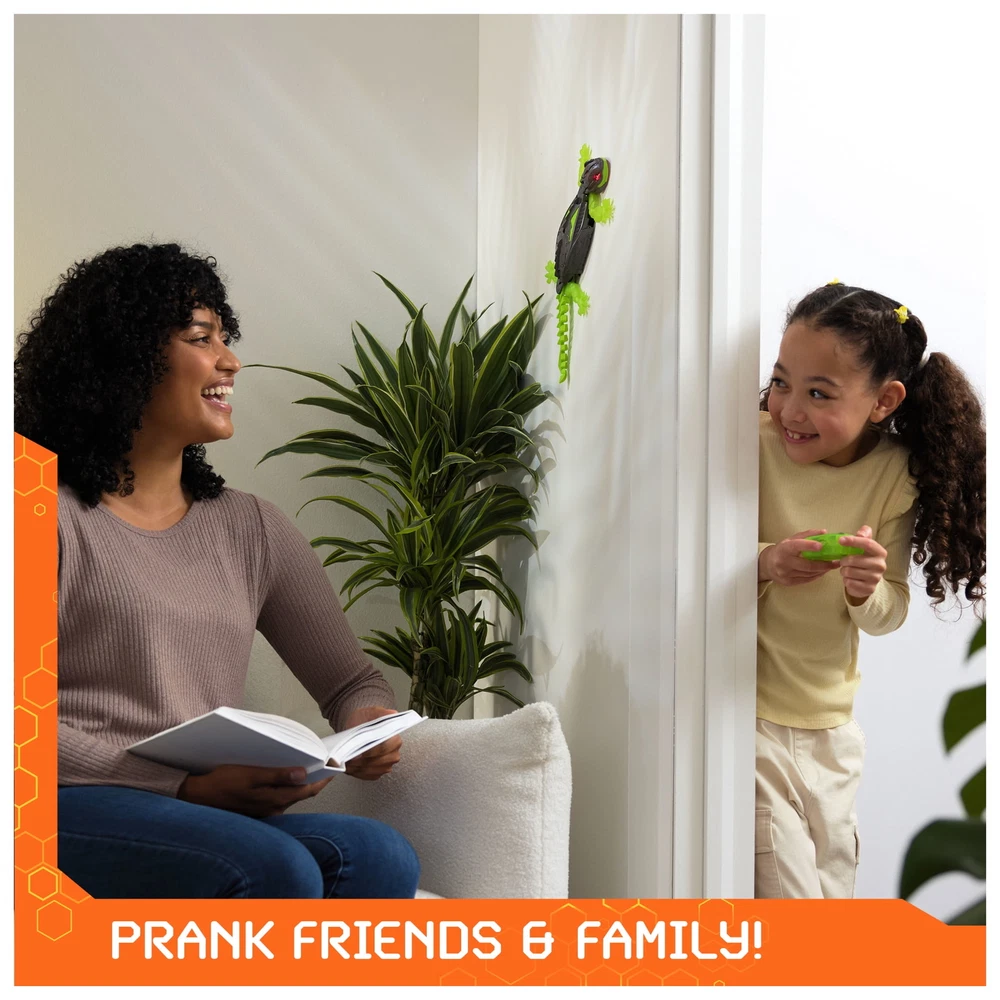 Scare friends and family with the HEX BOTS Gecko Robot! This ultra-realistic robot toy is sure to make anyone who's afraid of creepy crawlies or bugs scream! Watch as your gecko runs across the floor and crawls up the walls just like a real gecko! The full-function remote allows for intuitive play, as you can control it however you want, and the LED light eyes make the Gecko Robot stand out in the dark! The body is made of hard, while the limbs and tail are made of silicone! These remote-controlled boy toys have a range of 25 feet (8 meters) and come with 1 USB cable, so you can have endless fun with your HEX BOTS crawler toys! Requires 2 AAA batteries (not included). These boy toy robots are a must-have for your cool toy collection for boys ages 4-6. Build your collection of toy figures and playsets, construction toys, STEM toys, RC cars, and fighting games with HEX BOTS robotics! WALL-CRUSHING MOTION: Watch the creepy movements of the Wallcrawler robot toy as it crawls across the floor and up the walls, just like a real gecko! Scare your family and friends with lifelike movements! FULL-FUNCTIONAL REMOTE CONTROL: Easy-to-use remote control allows for intuitive play, as users can control up to 25 feet (8 meters) of range and movement in all directions. REALISTIC DESIGN: Featuring LED eyes that see in the dark, a green silicone tail and limbs, and a black body, this light-up toy's realistic, fun design is sure to creep out your friends! USB BATTERY: Included is 1 USB cable for charging your gecko, so you can have endless fun with this HEX BOTS crawler toy! Remote control requires 2 AAA batteries (not included) ROBOTIC KIDS TOYS & GAMES: These robot toys for boys ages 4-6 are a great addition to any collection and are sure to be a top wish list gift! Unleash mechanical chaos with HEX BOTS! Includes: 1 HEX BOTS Wall Crawler Gecko, 1 Remote Control, 1 Charging Cable, 1 Instruction Guide