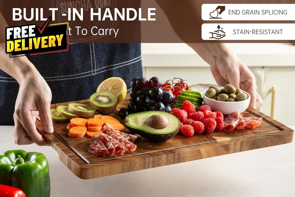 Store New Arrivals Add to Favorite View Feedback Contact Walnut Wood Cutting Board for Kitchen End Grain Chopping Board with Juice Groove Description HIGH-QUALITY END-GRAIN CUTTING BOARD: The unique end grain structure has excellent durability and can withstand heavy cutting without being easily damaged. Its "self-healing" property makes every cut as smooth as silk. The blade cuts between the wood fibers and the fibers quickly close after leaving, keeping the knife sharp as new. JUICE GROOVE AND ANTI-SLIP MAT: Our cutting Board is designed with a deep juice groove with a capacity of up to 3 ounces, which effectively prevents liquid spills and keeps the countertop clean. The included stick-on rubber non-slip feet minimize the risk of injury from sharp knives, allowing the chef to confidently chop and focus on cooking delicious food, enjoying a good time with family. GENTLE ON KNIVES, TOUGH ON TASKS: The 16.5*11.6in cutting board is made of American walnut, which has an ideal hardness to protect the blade while preventing deep cuts. The 0.8-inch thickness ensures that you can complete kitchen preparation tasks such as cutting, chopping, and chopping, suitable for most kitchens and party times. NATURAL WALNUT, HEALTHY LIFE: cutting board is made of premium sustainable wood. Coated with natural beeswax oil before leaving the factory, each cutting board is not only beautiful and durable, but also waterproof and stain-resistant without chemical coating. Natural walnut wood allows you to enjoy the fun of cooking while protecting the health of your family. Included Components Non-slip Feet Number of Items 1 Color Wood Pattern End Grain Material Walnut Wood Material Type Walnut Wood Item Weight 3.8 Pounds Shape Rectangular Product Care Instructions Hand Wash Only Recommended Uses For Product Bread, Fish, Fruit, Meat, Vegetable Special Feature Build-in Groove, Non Slip Feet, Reversible Product Dimensions 16.5"L x 11.6"W x 0.8"Th Cartoon Character Green Size 16.5"L x 11.6"W ABOUT US Prior to making any purchase from our store, we’d like to introduce ourselves. My name is Shahzad Yaqub , and I am the proud owner of Epic Emporium Deals , located in the great state of Illinois, USA. I have been an active and trusted eBay seller since Jan 14, 2025 . At Epic Emporium Deals , we are committed to offering competitive prices and top-quality products . Our extensive collection features a wide variety of items, including media such as books, movies, music, and games , as well as electronics, toys, sporting apparel, clothing, tools , and general home and garden essentials —and much more! If you have any questions or require assistance, please don’t hesitate to reach out. Your satisfaction is our priority, and we look forward to providing you with an exceptional shopping experience. SHIPPING We are always working hard to ensure your package arrives as soon as possible. Please understand that some factors like weather, high postal traffic, and the performance of shipping companies are outside of our control. We offer free shipping to the lower 48 states and ship within 2 business days of payment, usually sooner. We do not accept P.O. Boxes. Please provide a physical address. For shipping outside of the continental USA, we only use eBay's Global Shipping Program. The item is shipped to IL and then sent to the rest of the world. International customers are responsible for all duties and taxes. Continue to 'check out' to calculate costs for shipping the item to your country. Messages regarding eBay's Global Shipping Program MUST be directed at eBay EXCLUSIVELY. RETURNS We do not accept returns under normal circumstances. However, we will gladly consider a return if the item is received broken or if the wrong size is sent to you. In all other cases, returns will not be accepted. CUSTOMER SATISFACTION We try our very best to make sure every customer is completely satisfied. If there's a problem, message us! We're happy to help.