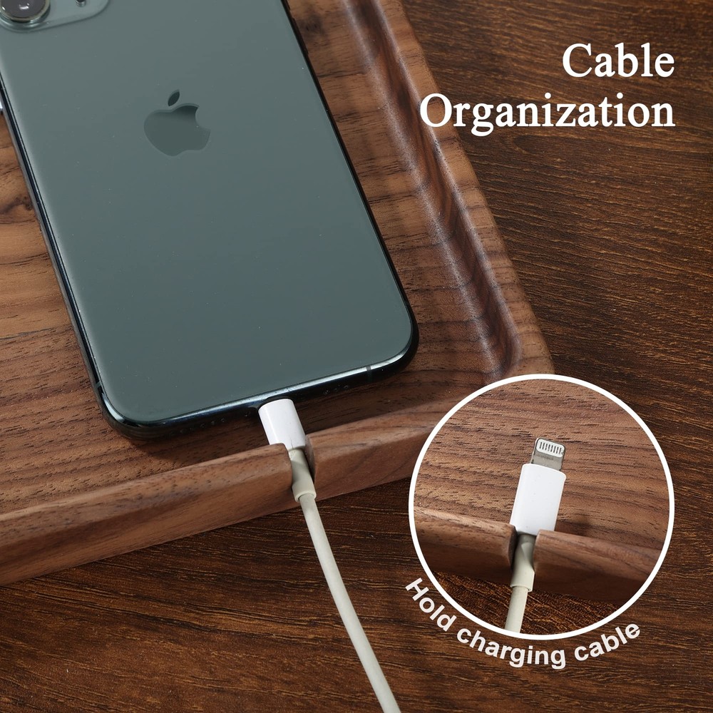 Versatile Organization: Valet tray is the perfect choice for bedside table or entryway console table. It can hold items such as phones, keys, glasses, wallet, and more. Keep your life organized and make your daily routines more convenient and orderly Richly Textured Walnut Wood: Crafted from elegant walnut wood, The delicate texture brings a natural beauty and unique texture to the accessories organizer tray. this walnut edc tray adds a touch of elegant to any space Charging Slot: The slot can secure the charging cable, allowing you to easily find and quickly connect it when you need to charge your device. Enjoy the convenience of a neat and organized desk Smooth Lines: We have meticulously polished the edges of the tray to showcase smooth, rounded lines. This design not only enhances its visual appeal but also adds to the comfort of use Perfect Gift Idea: Edc tray is a unique and thoughtful gift, perfect for presenting to your loved ones on various special occasions, Whether it's Mother's Day, Father's Day, Valentine's Day, or Christmas