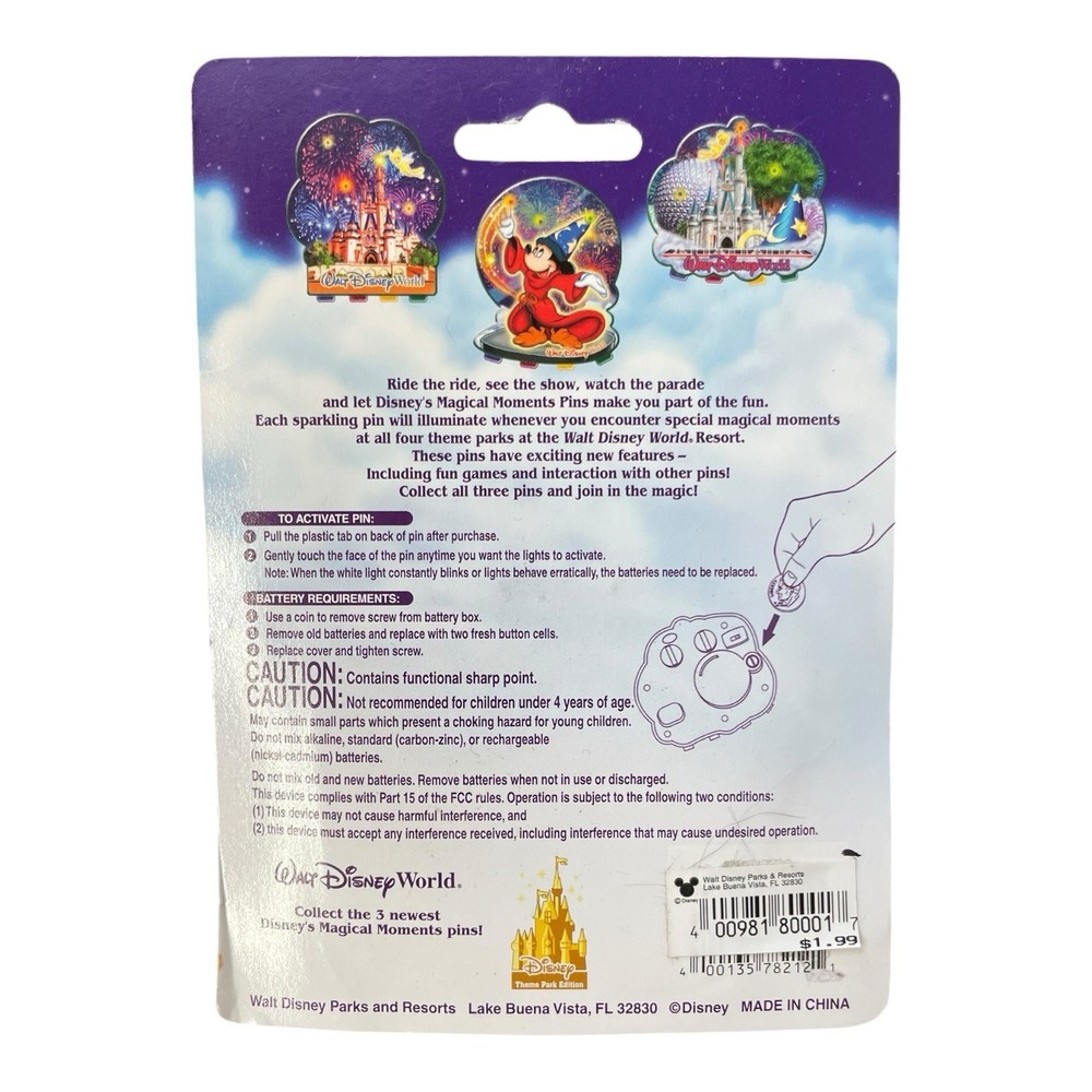 Own a Walt Disney World Cinderella Castle Magical Moments Pin! Has more light shows, plays games, and interact with other pin! It requires 2 CR2032 button cell batteries!