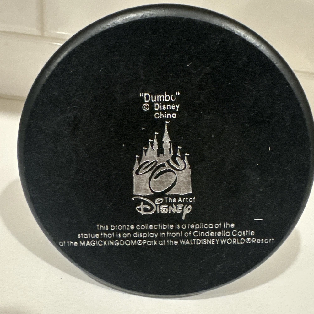 This Walt Disney World Magic Kingdom Dumbo & Timothy Bronze Statue Figurine is a must-have for any Disney fan. The intricate details on this figurine are amazing, from the texture of Dumbo's feathers to the expression on Timothy's face. Measuring at 7 inches tall, this figurine is the perfect addition to any Disneyana collection. The brand of this figurine is Disney, and it falls under the categories of collectibles, Disneyana, contemporary (1968-Now), figurines, and other contemporary Disney figurines. The franchise of this figurine is Disney, and it is a beautiful representation of the magic that can be found at Walt Disney World. Add this timeless piece to your collection today!